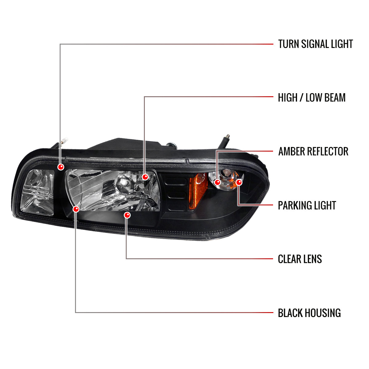 1987-1993 Ford Mustang Factory Style Crystal Headlights (Matte Black Housing/Clear Lens)