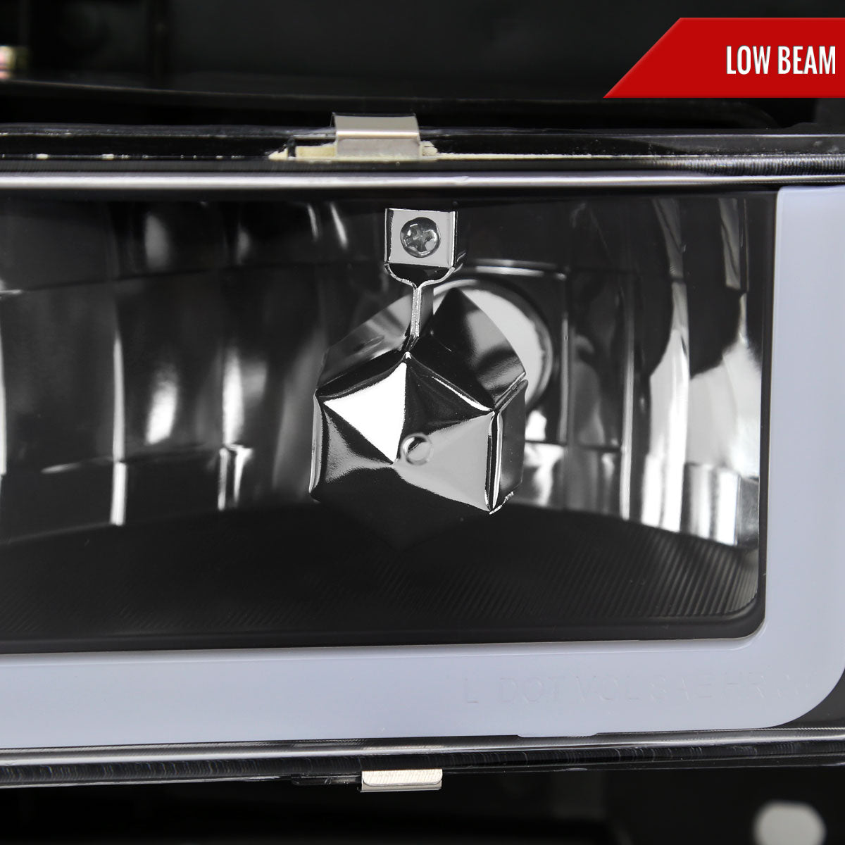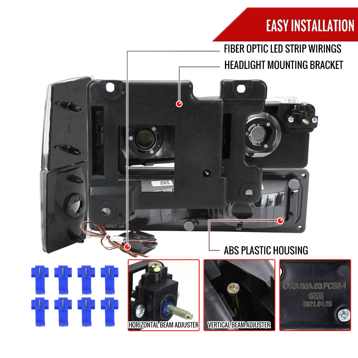 Comes with (1) pair of matte black housing bright white fiber optic LED strip with clear lens factory headlights with bumper and corner lights with amber reflector included