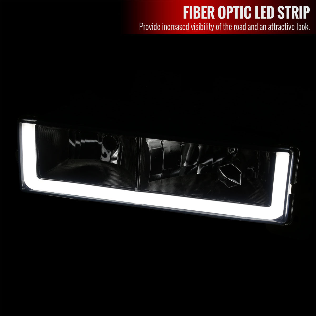 1988-1998 Chevrolet C/K C10/Tahoe/Suburban/Silverado GMC Sierra/Yukon/Suburban LED Bar Crystal Headlights (Chrome Housing/Smoked Lens)