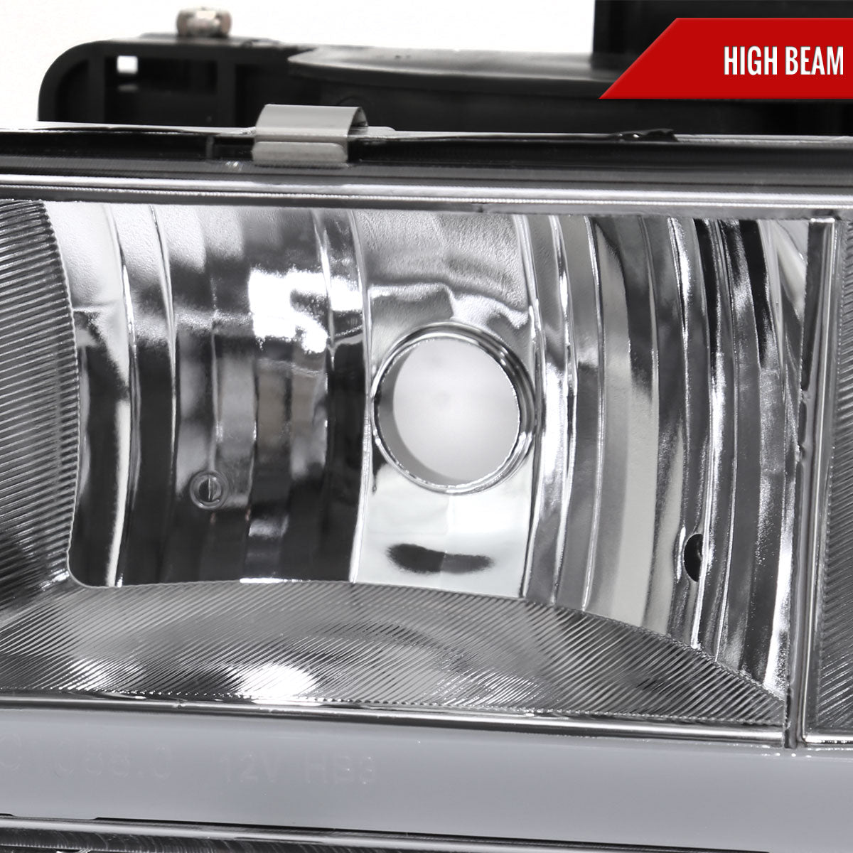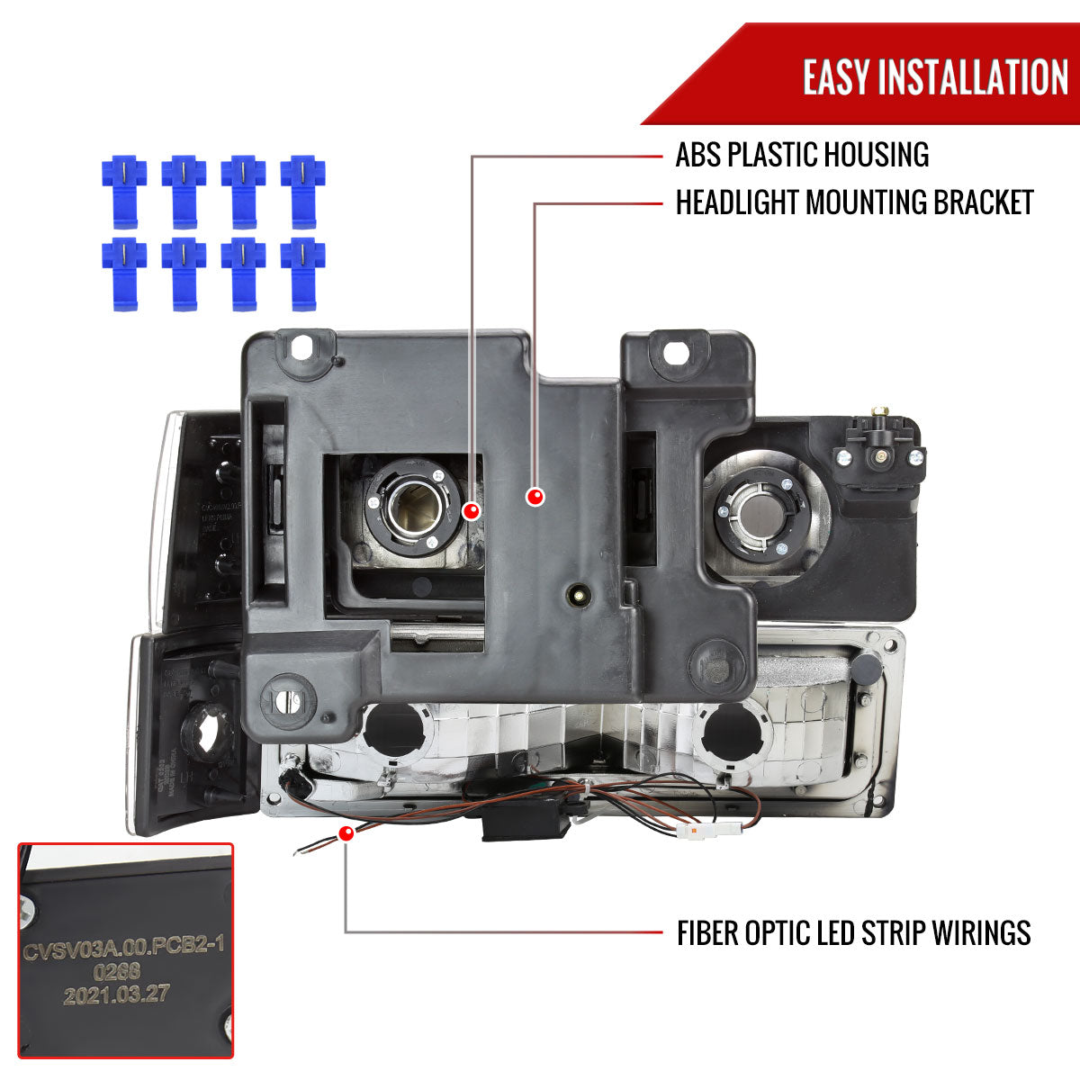 Comes with (1) pair of chrome housing LED strip/bar with clear lens headlights with bumper and corner lights with amber reflectors