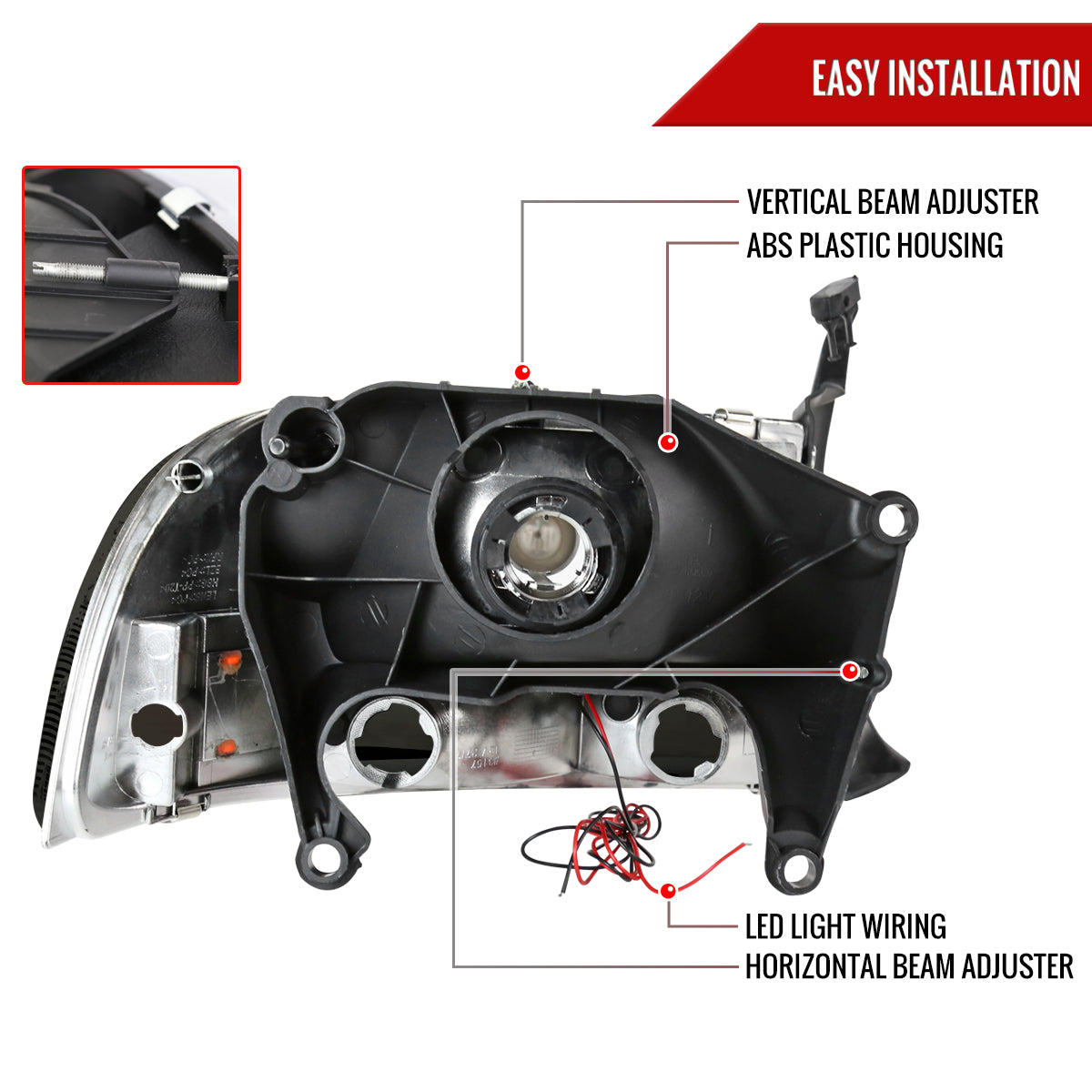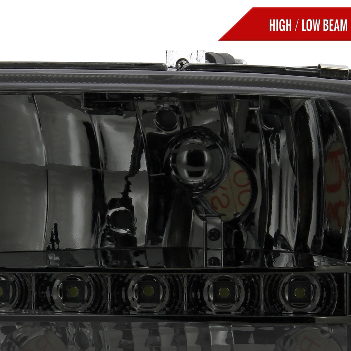 1997-2004 Dodge Dakota/ 1998-2003 Durango SMD LED Light Strip Factory Style Crystal Headlights (Chrome Housing/Smoked Lens)