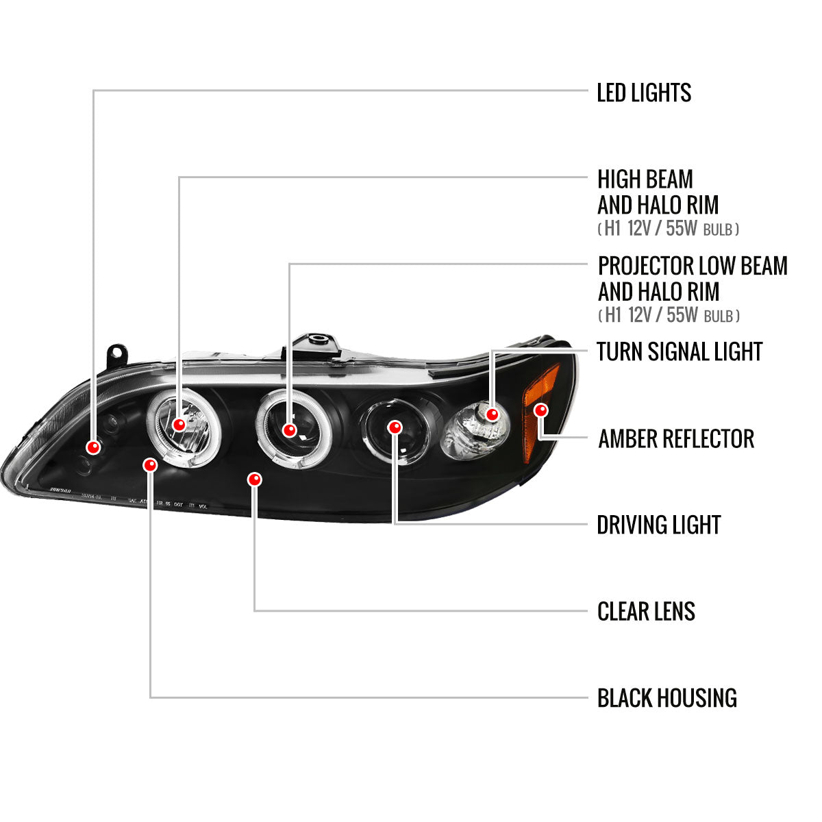 1998-2002 Honda Accord Dual Halo Projector Headlights (Matte Black Housing/Clear Lens)
