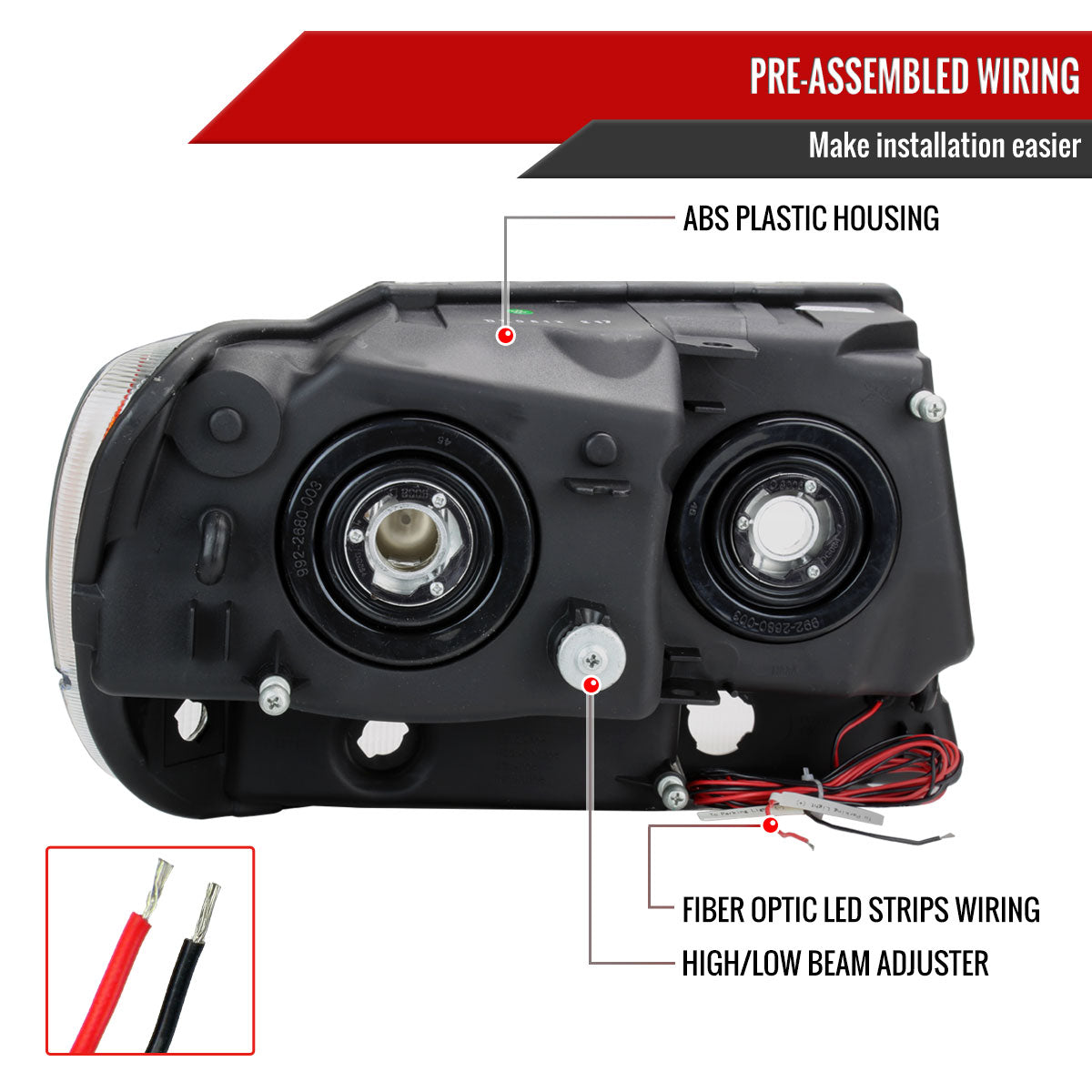 1999-2004 Jeep Grand Cherokee Factory Style Dual LED Bar Headlights (Chrome Housing/Clear Lens)
