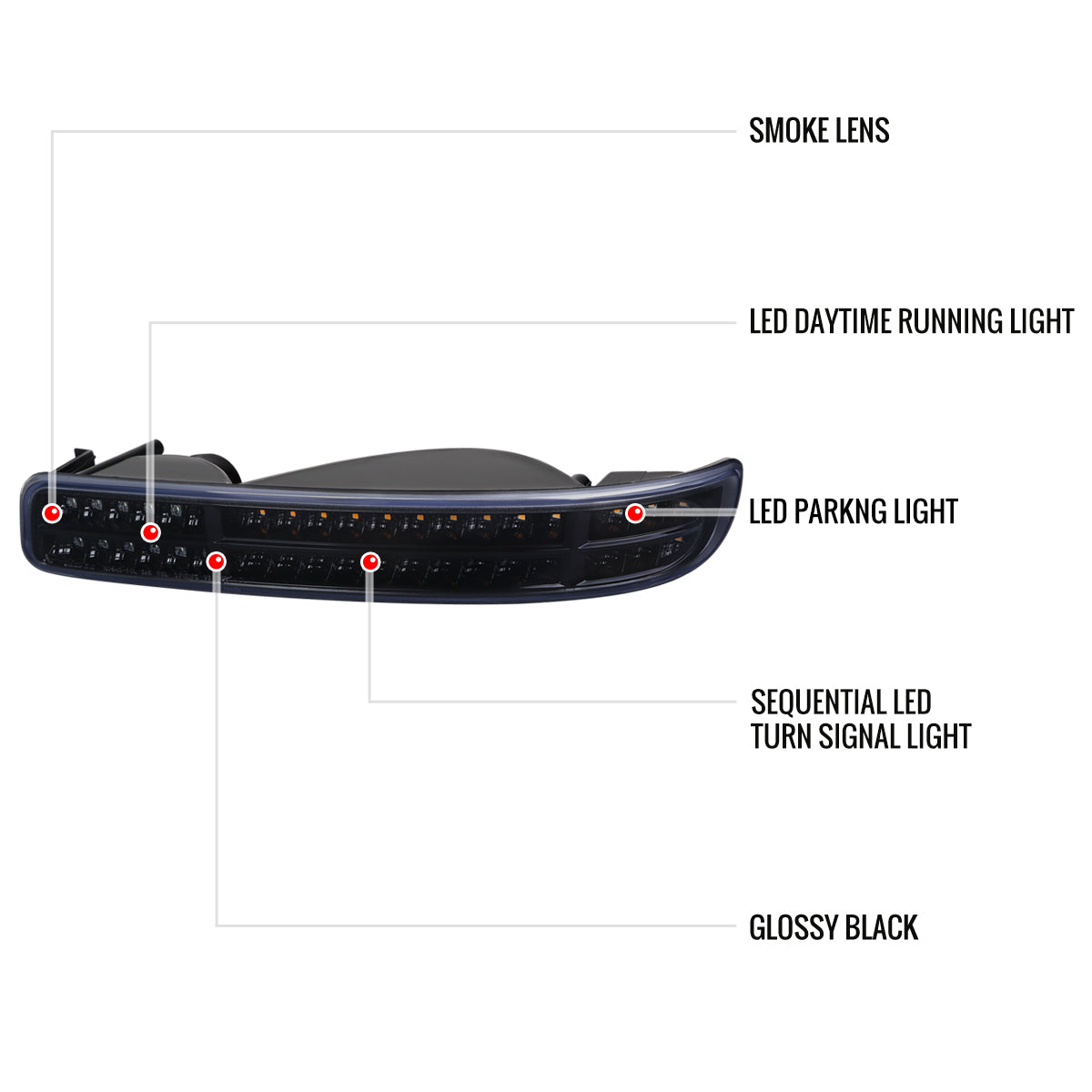 1999-2006 GMC Sierra/ 2000-2006 Yukon/Yukon XL Dual Halo Projector Headlights with LED Sequential Turn Signal Bumper Lights (Glossy Black Housing/Smoked Lens)