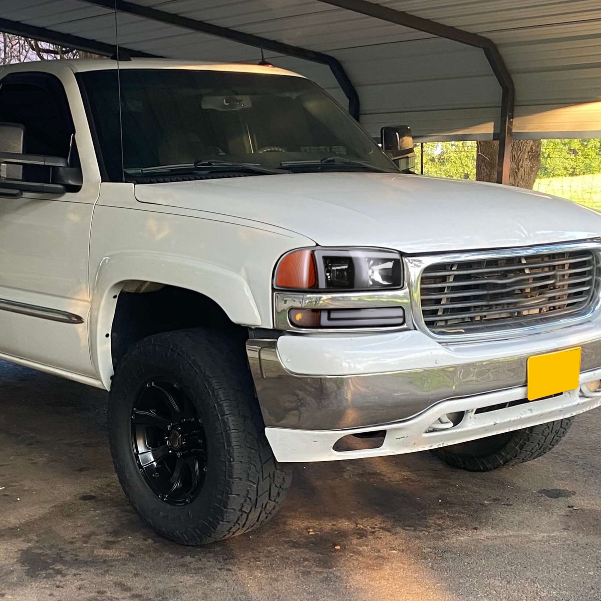 1999-2006 GMC Sierra/2007 Sierra Classic/2000-2006 Yukon/XL Factory Style Headlights and Sequential Turn Signal Bumper Lights (Matte Black Housing/Clear Lens)