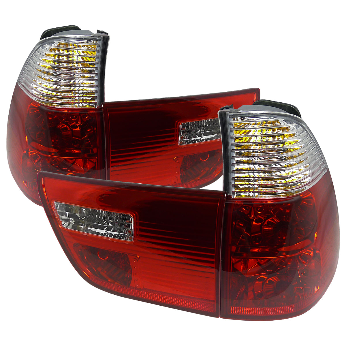 2000-2006 BMW E53 X5 Tail Lights (Chrome Housing/Red Clear Lens)