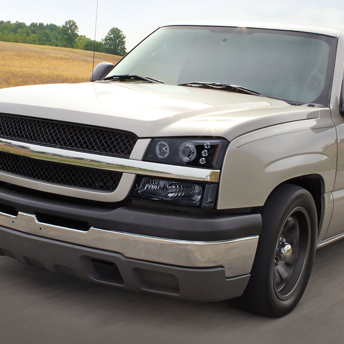 2002-2006 Chevrolet Avalanche/ 2003-2007 Silverado Dual Halo Projector Headlights (Glossy Black Housing/Smoked Lens)
