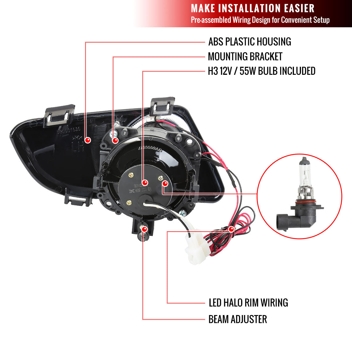 2003-2005 Mazda 6 Sedan H3 Halo Ring Fog Lights Kit (Chrome Housing/Clear Lens)