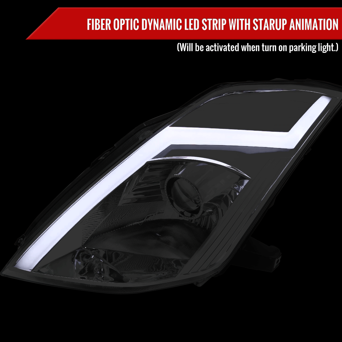 2003-2005 Nissan 350Z Switchback Sequential Turn Signal Animated LED Bar Projector Headlights (Chrome Housing/Clear Lens)
