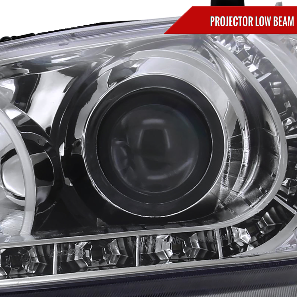 Come with (1) set of chrome housing, clear lens projector headlights with Audi R8 style LED light strip