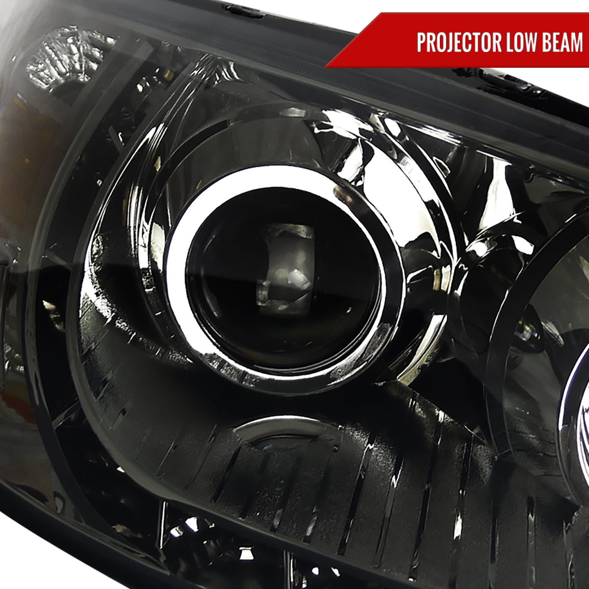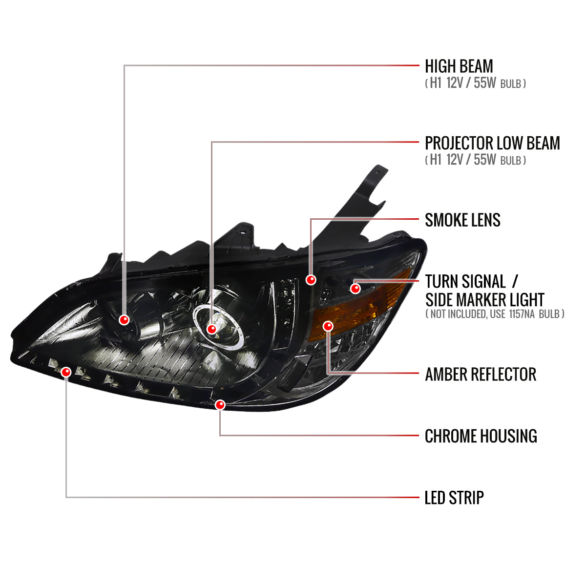 Come with (1) set of chrome housing, smoked lens projector headlights with Audi R8 style LED light strip