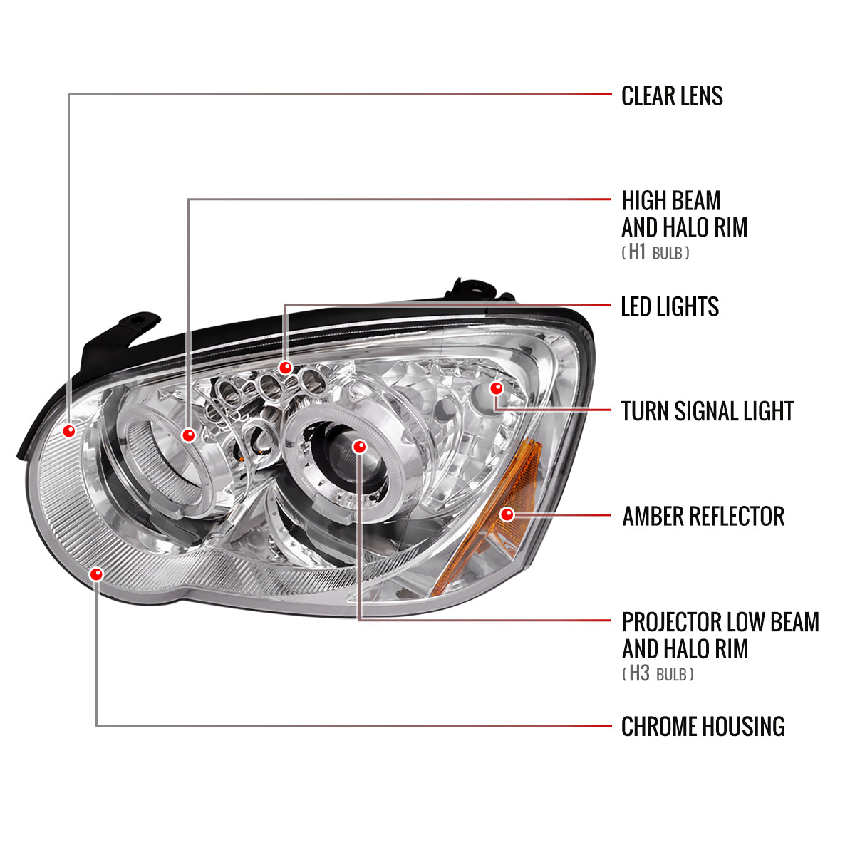 2004-2005 Subaru Impreza WRX/STI Outback Dual Halo Projector Headlights (Chrome Housing/Clear Lens)