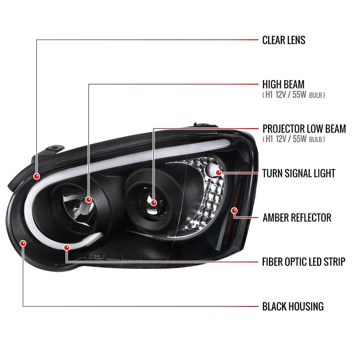 2004-2005 Subaru Impreza WRX/STI Outback Projector Headlights w/ LED Bar (Matte Black Housing/Clear Lens)