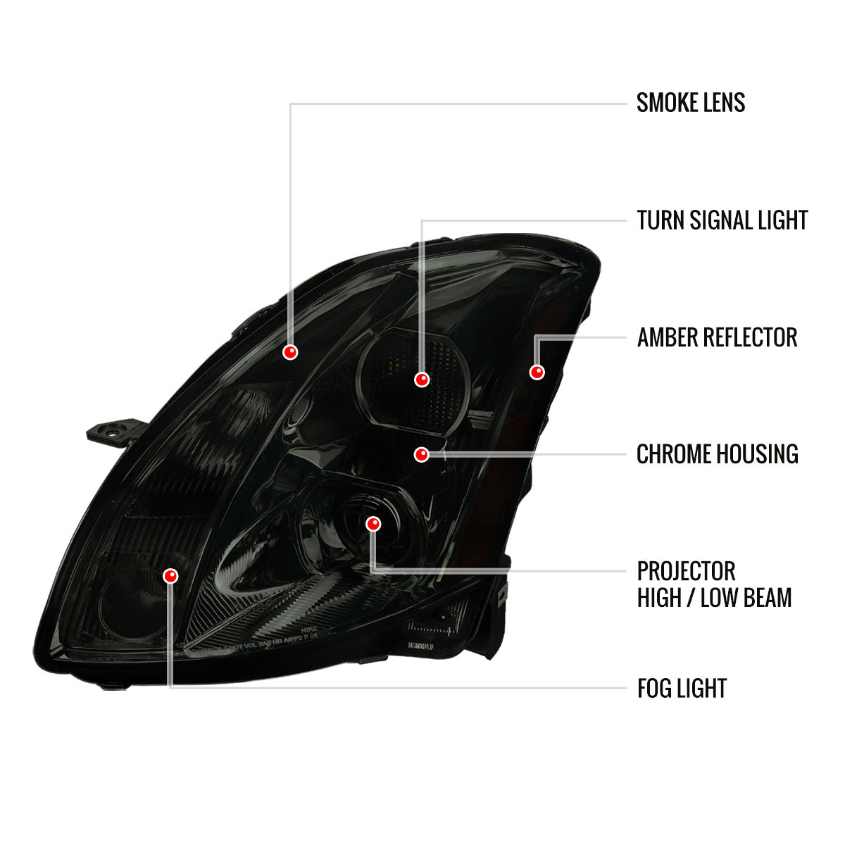 2004-2006 Nissan Maxima Projector Headlights w/ Amber Reflectors (Chrome Housing/Smoked Lens)