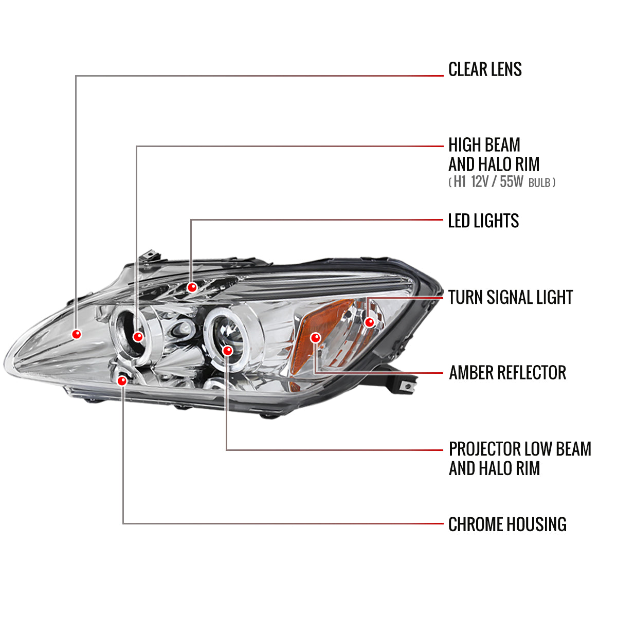 2004-2009 Honda S2000 AP2 Dual Halo Projector Headlights (Chrome Housing/Clear Lens)