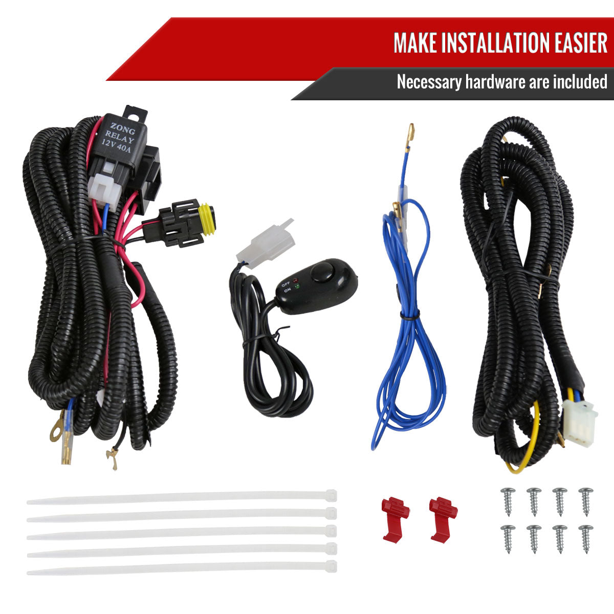 Comes with H8 12V 35W bulbs, pre-assembled wiring harness, on/off switch and relay