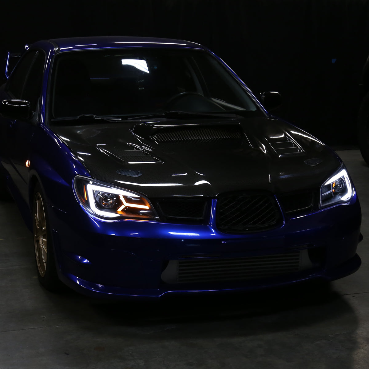 2006-2007 Subaru Impreza WRX STI LED Bar Sequential Turn Signal Projector Headlights (Matte Black Housing/Clear Lens)