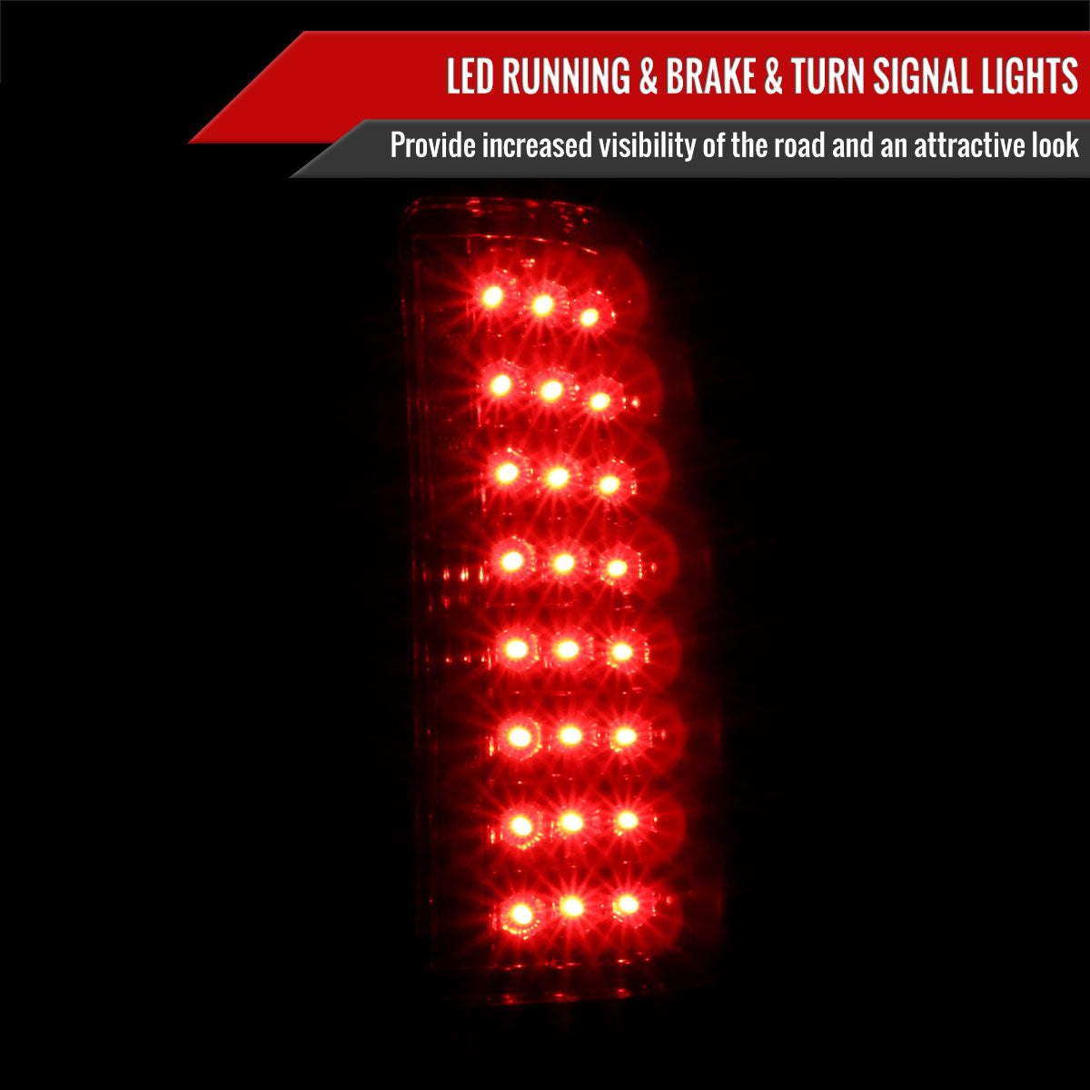 Comes with 1 pair of chrome housing red lens LED tail lights