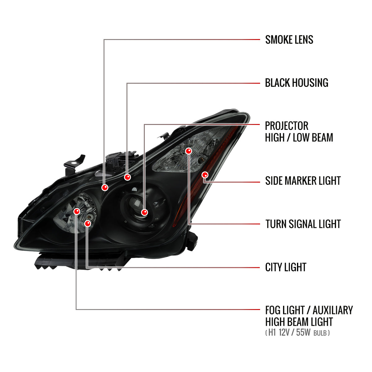 2008-2013 Infiniti G37/2014-2015 Q60 2 Door Coupe/Convertible Factory Style Projector Headlights (Matte Black Housing/Smoked Lens)