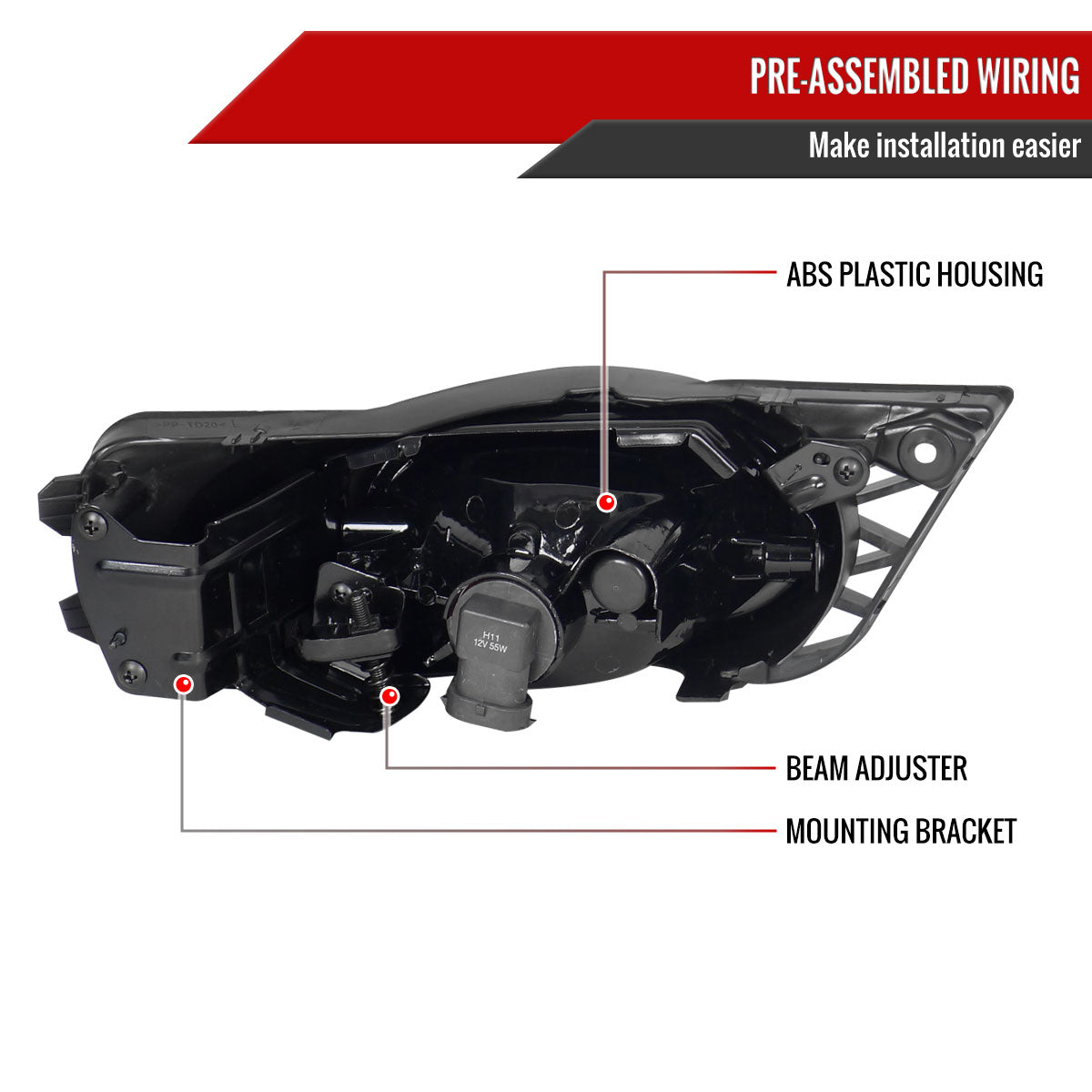 2009-2011 Honda Civic Sedan H11 Fog Lights Kit (Chrome Housing/Yellow Lens)