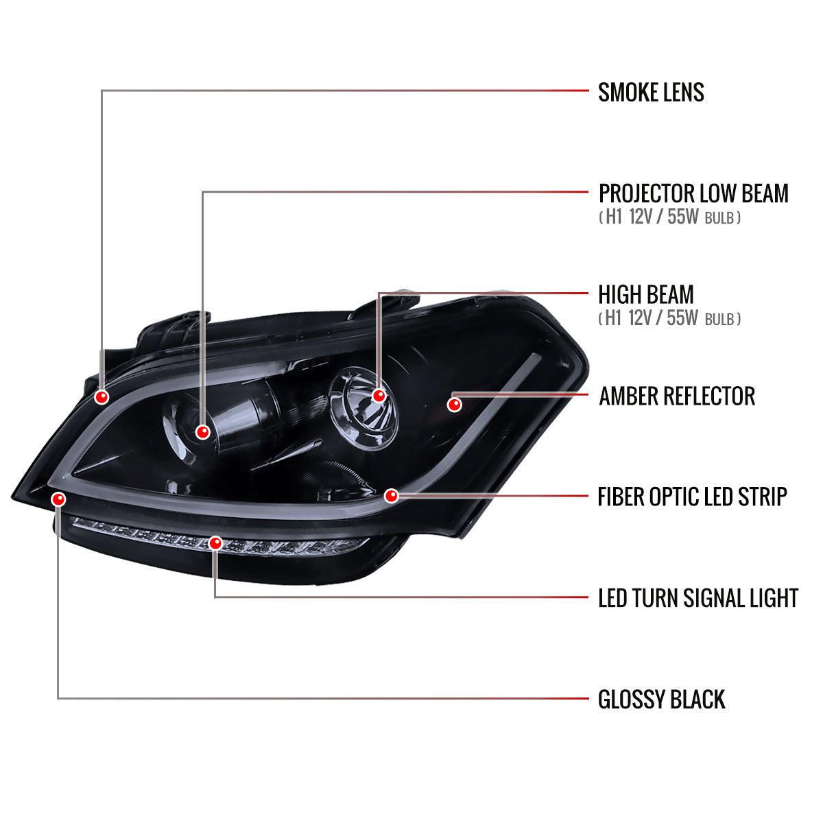 2010-2011 Kia Soul Projector Headlights w/ LED Light Bar & LED Turn Signal Lights (Glossy Black Housing/Smoked Lens)