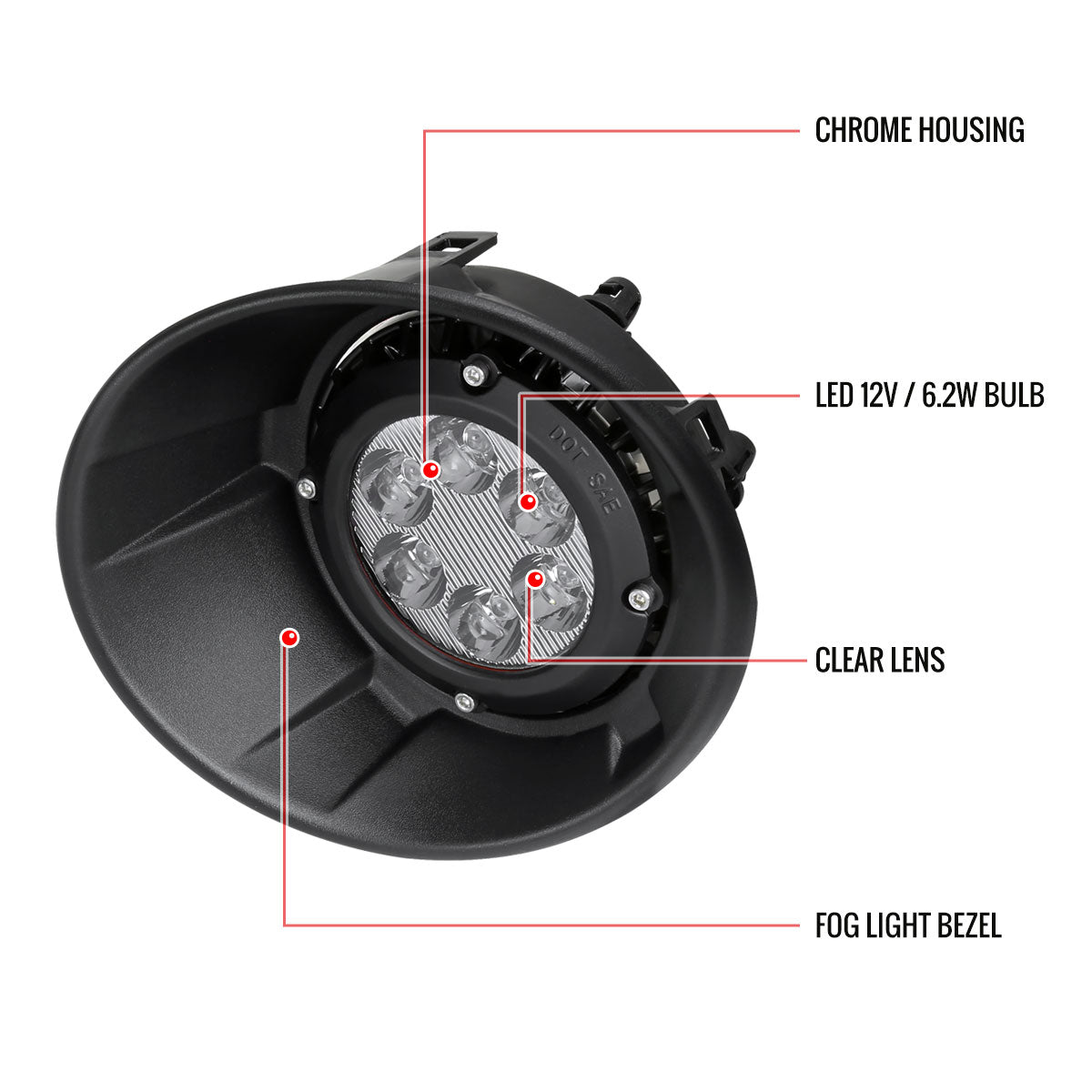 2010-2013 Chevrolet Camaro LED Fog Lights Kit w/ Switch & Wiring Harness (Chrome Housing/Clear Lens)