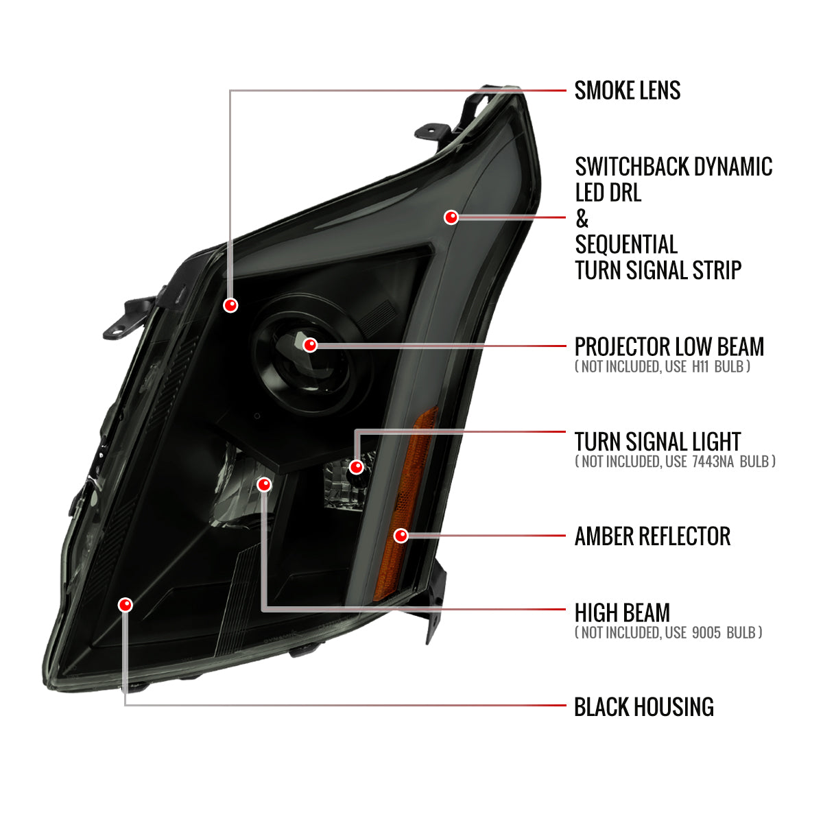 2010-2016 Cadillac SRX Projector Headlights w/ Switchback Sequential Turn Signal LED Bar (Matte Black Housing/Smoked Lens)