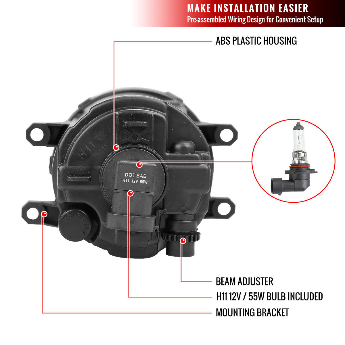 2013-2015 Toyota Avalon H11 Fog Lights Kit w/ Switch & Wiring Harness (Chrome Housing/Clear Lens)