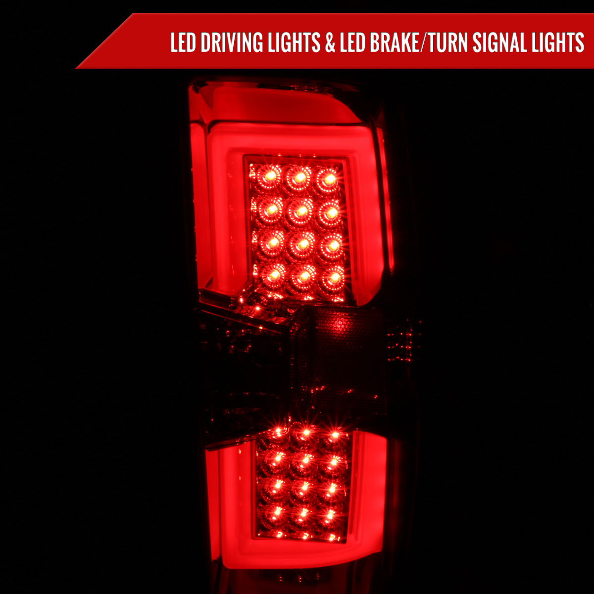Comes with 1 pair of chrome housing clear lens LED tail lights w/ LED bar