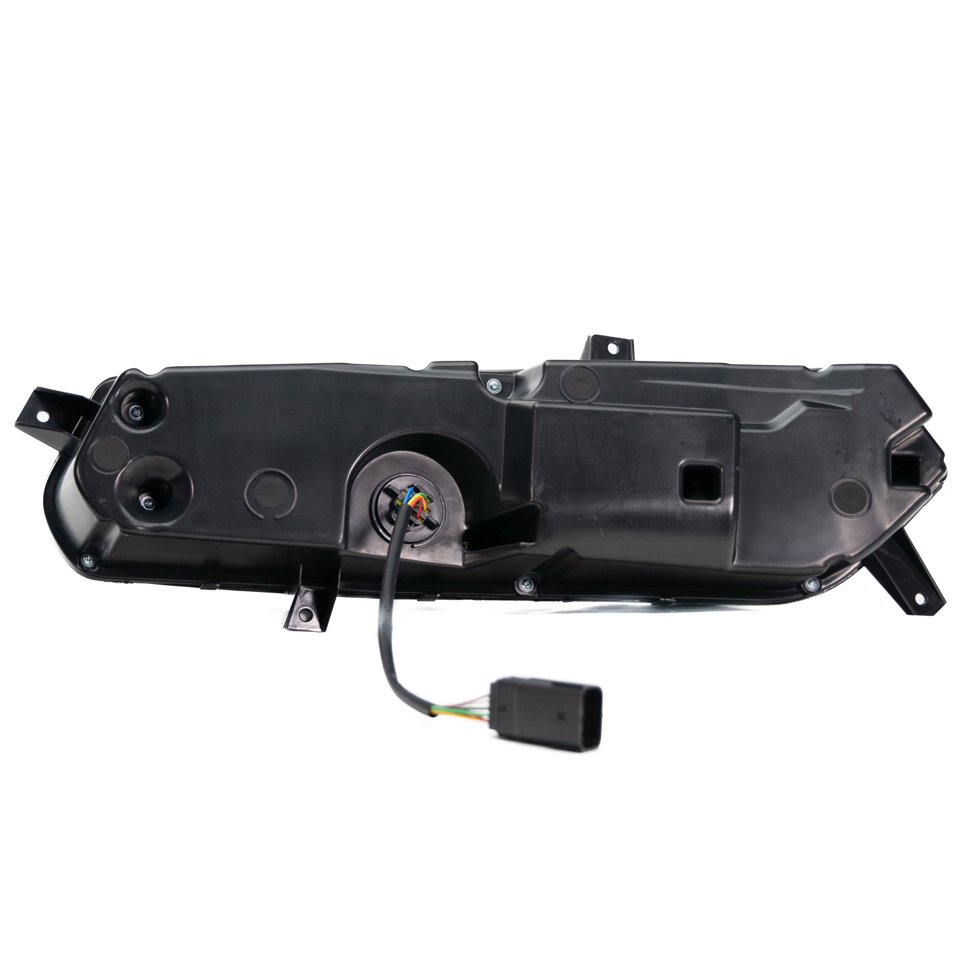 The dynamic LED DRL strip adds a contemporary, high-speed appearance, flowing smoothly towards the outer edges. Sequential amber LED turn signals and ultra-bright white reverse lights significantly enhance visibility in any driving condition. Built by an ISO-certified manufacturer, these lights meet or exceed OEM quality standards for durability and reliability.