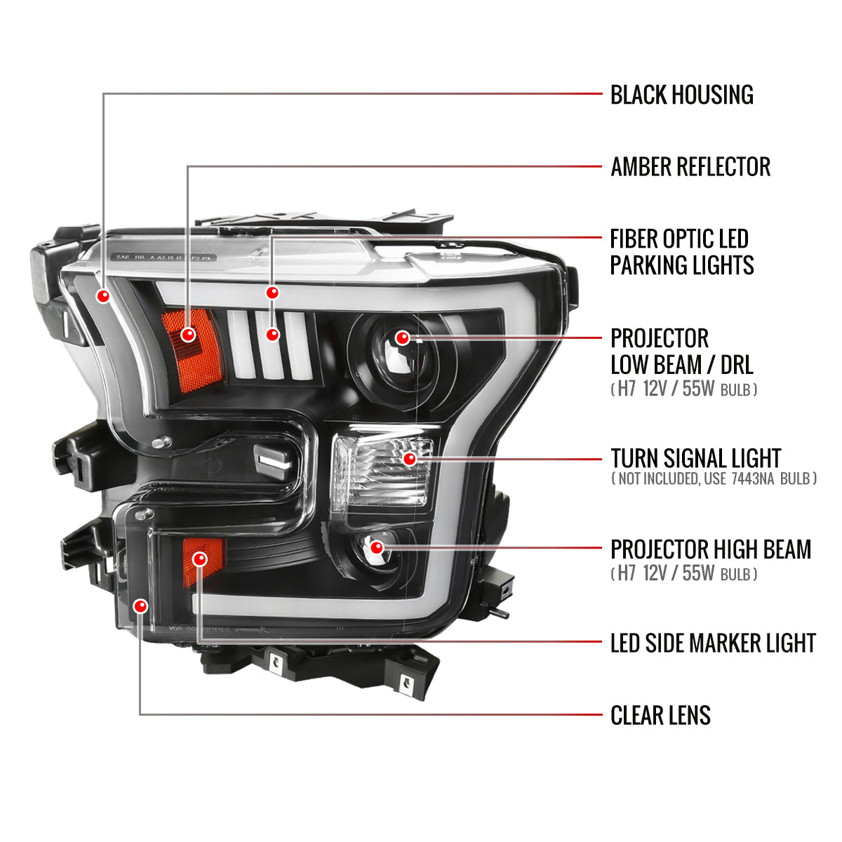 2015-2017 Ford F-150 LED Bar Projector Headlights - RS (Matte Black Housing / Clear Lens)