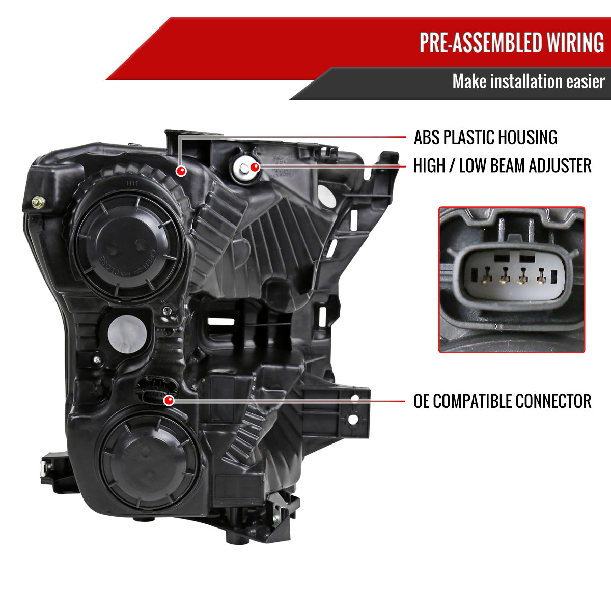 2015-2017 Ford F-150 Replacement Factory Style Headlights (Matte Black Housing/Clear Lens)