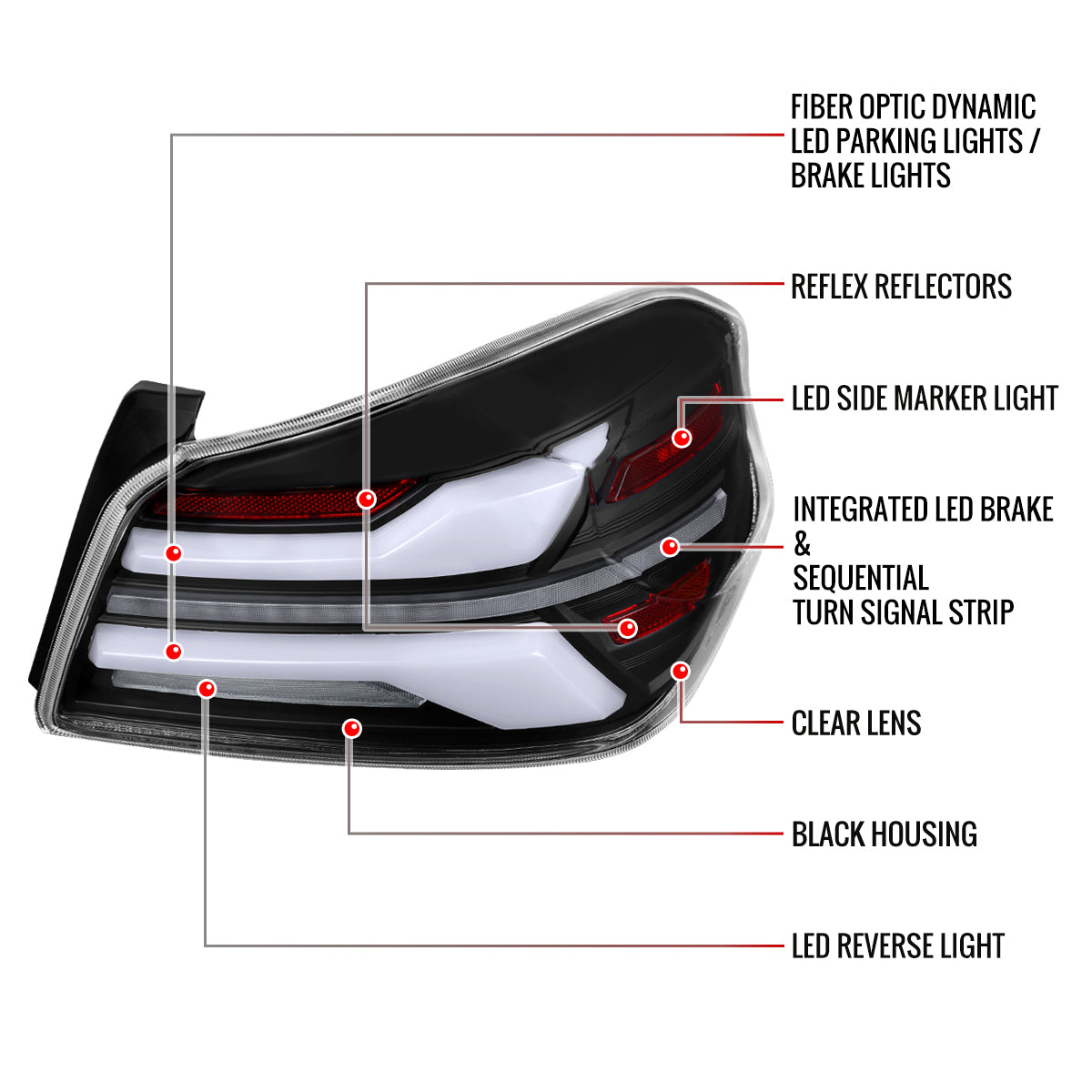 2015-2021 Subaru WRS STi Tail Light w/ Sequential LED Turn SignaL and LED Side Marker Brake Reverse (Matte Black Housing / Clear Lens)