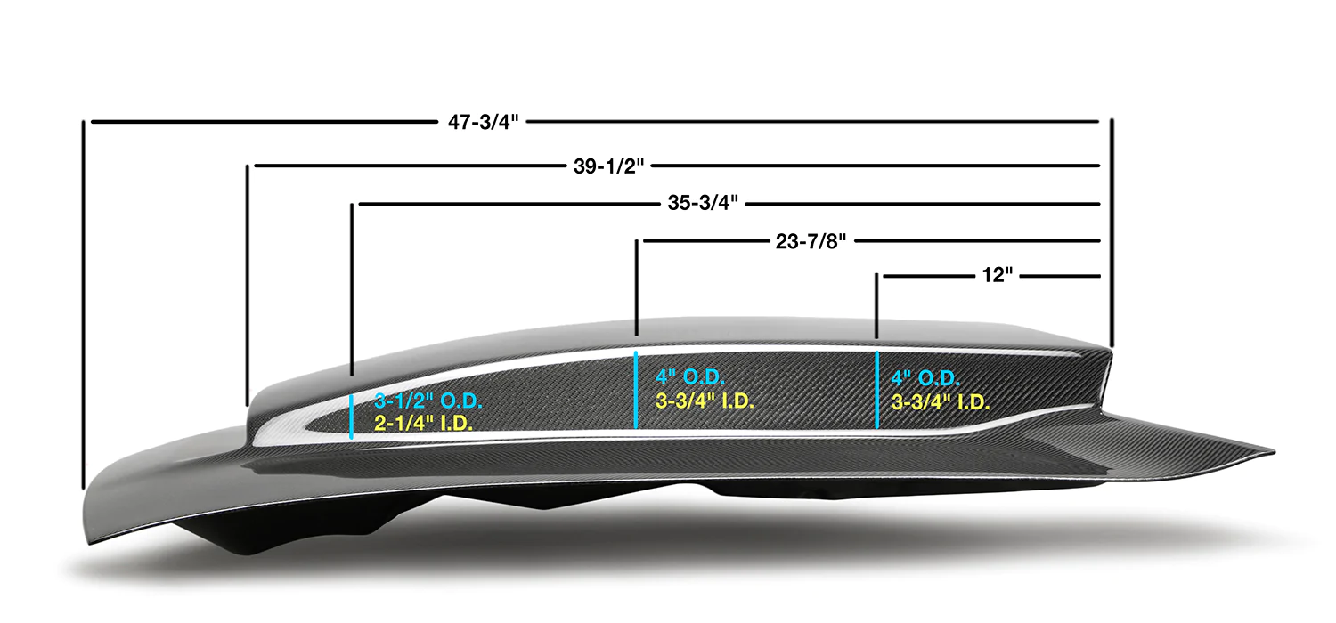 *Added height of air scoop allows hood to be used with popular aftermarket supercharger applications or induction systems where space may be limited
