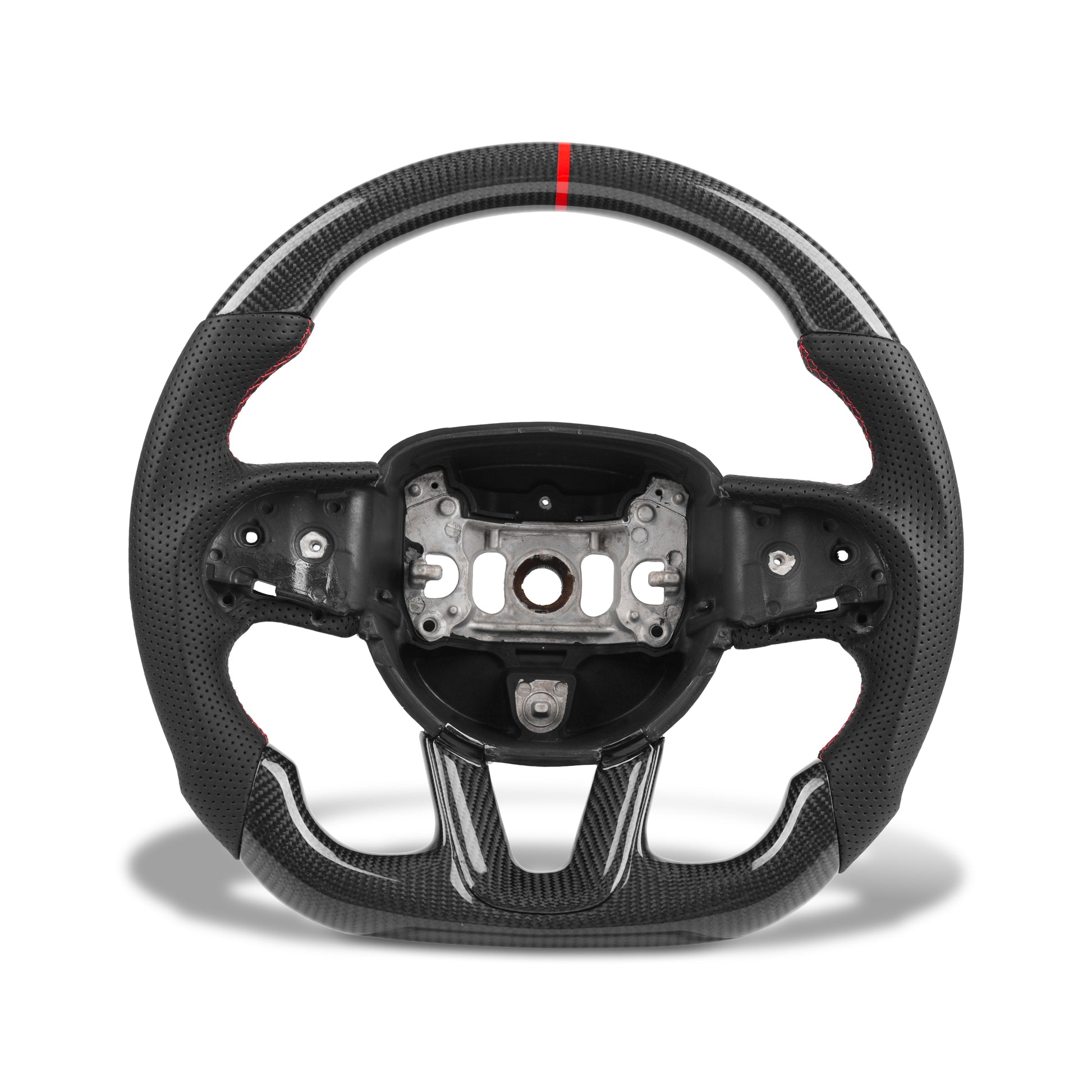 Upgrade your Charger’s interior with a race-inspired carbon fiber steering wheel core engineered for OEM-level fitment, enhanced grip, and aggressive performance styling. Designed specifically for 2015–2025 Dodge Charger models, this pre-manufactured steering wheel core features real carbon fiber construction, black perforated leather grips, red contrast stitching, and a red center alignment ring for a bold, motorsport-inspired cockpit.