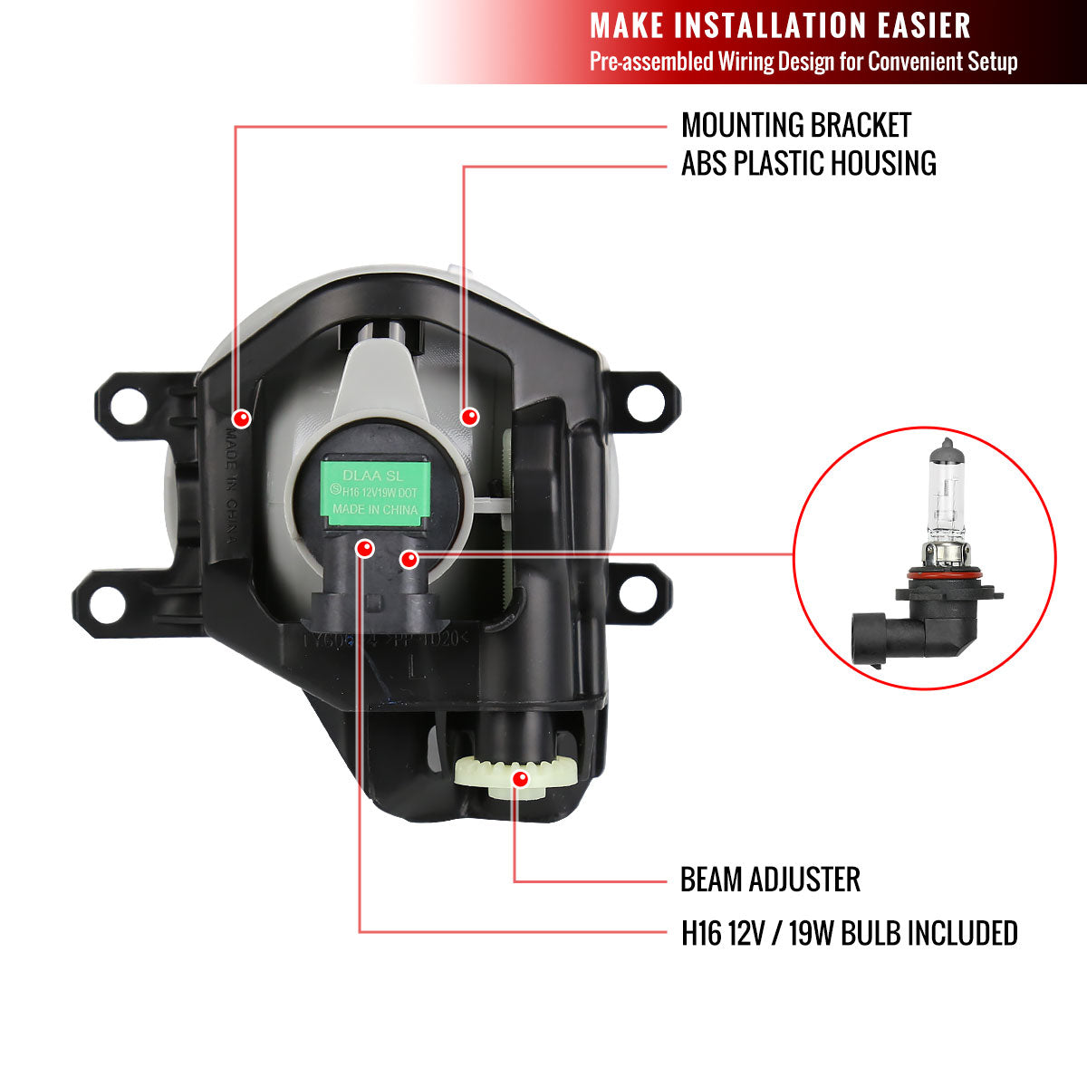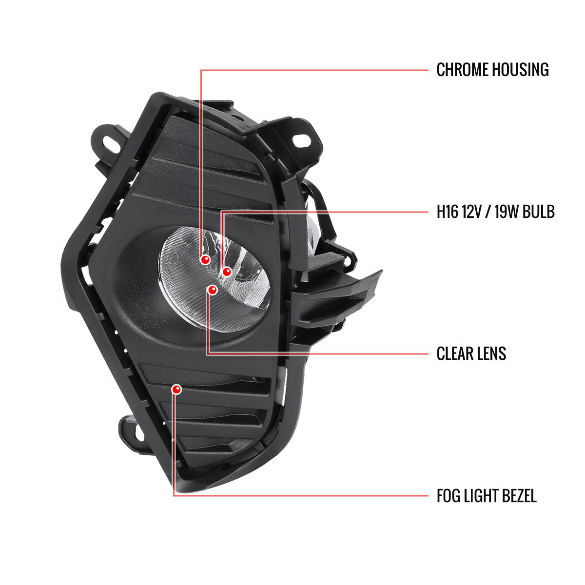 2016-2020 Toyota RAV4 H16 Fog Lights Kit (Chrome Housing/Clear Lens)