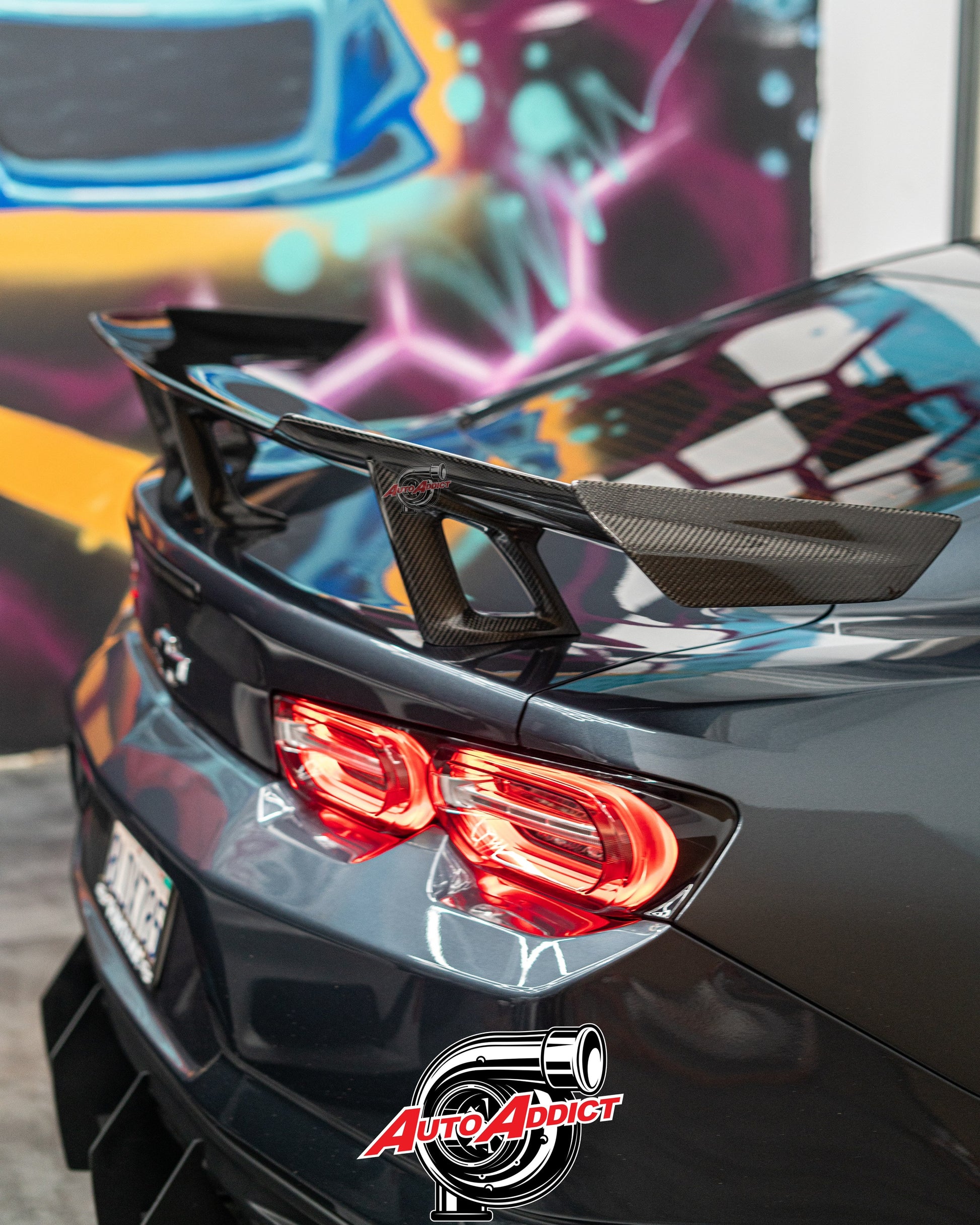 Carbon fiber spoiler assembly with carbon fiber uprights - direct replacement for SS, ZL1, & ZL1 1LE