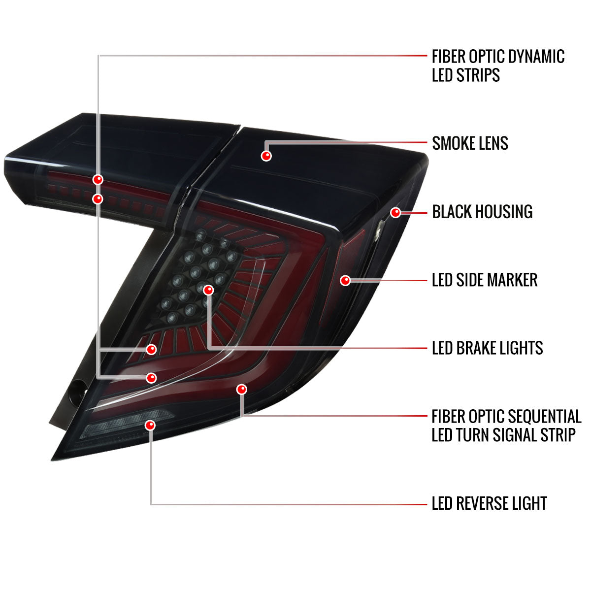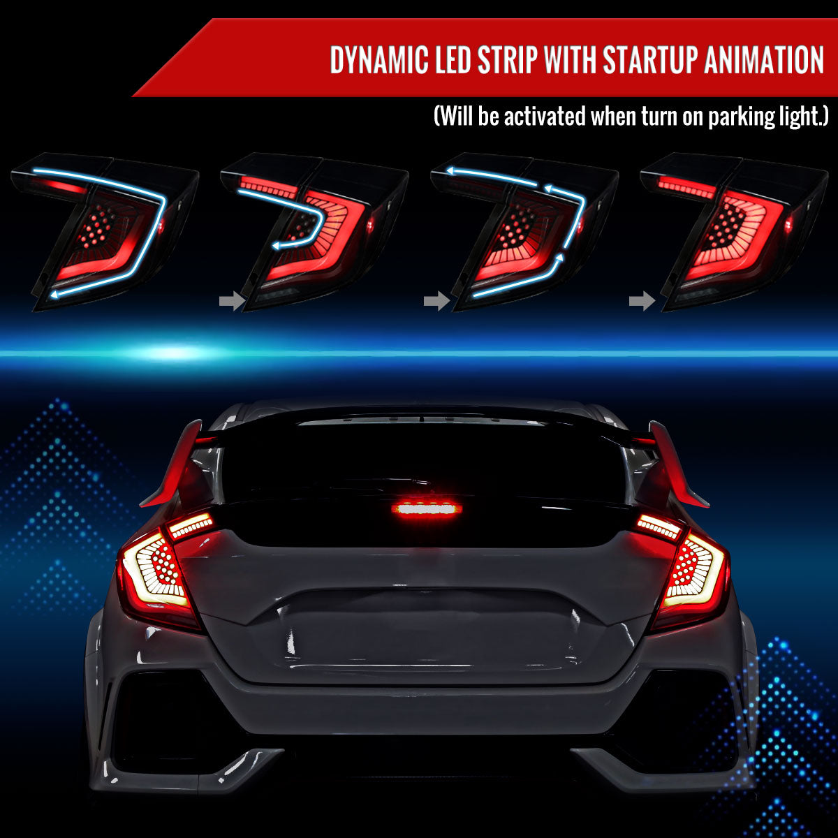2017-2021 Honda Civic Hatchback LED Sequential Signal Tail Lights (Black Housing/Smoked Lens)