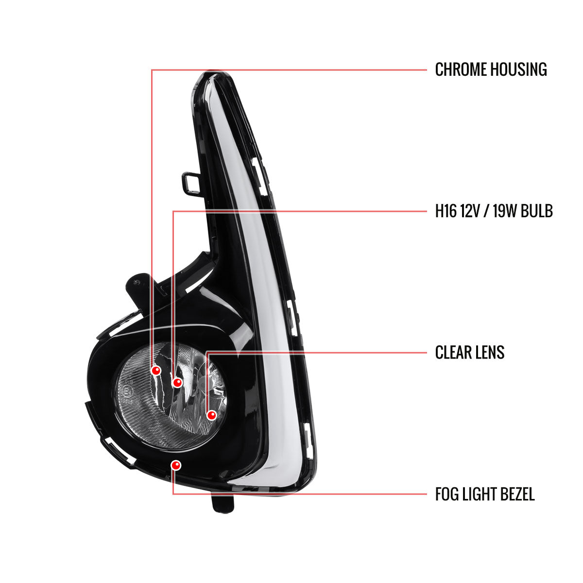 2018-2019 Toyota Yaris Hatchback H16 Fog Lights Kit (Chrome Housing/Clear Lens)