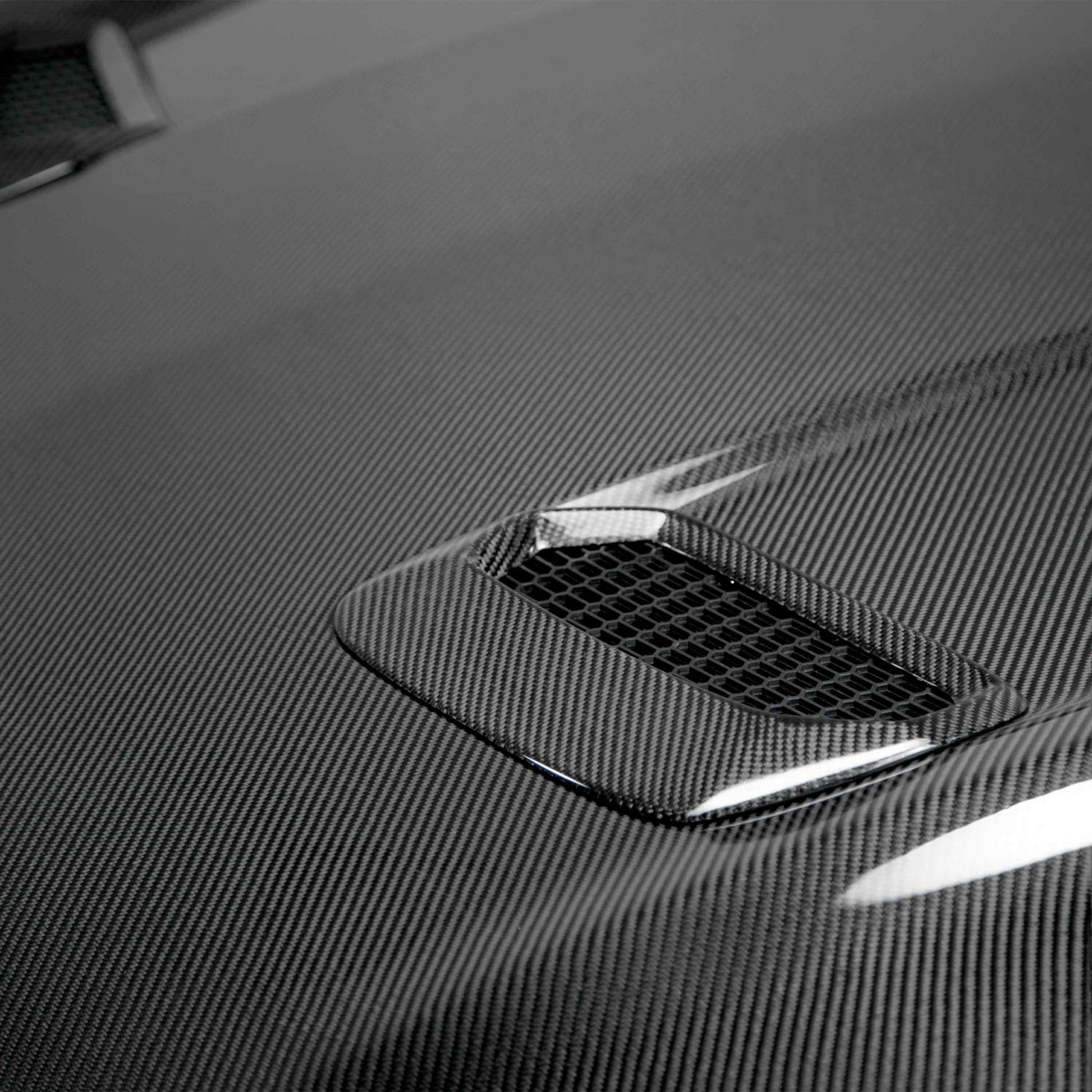 *Carbon fiber "skeleton" bonded to underside of carbon fiber hood - reduced weight