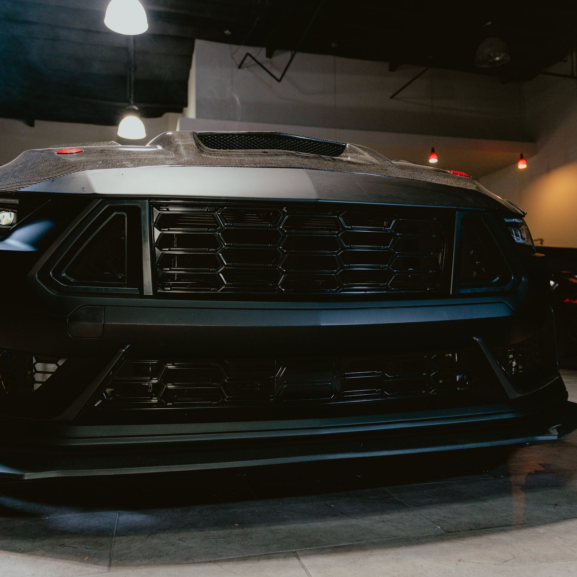 Enhanced Airflow and Aerodynamics. The custom bumper design features larger air intakes and an updated grille to optimize cooling efficiency. Pair this kit with our recommended S650 Headlights for S550 for an upgraded lighting system that integrates seamlessly into the sleek, modern design and our exclusive Dark Horse Spoiler for 2015-2023 models now available for pre-order.
