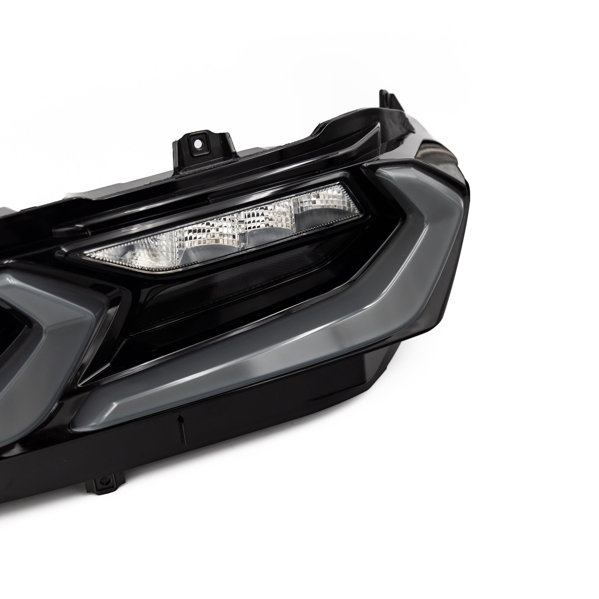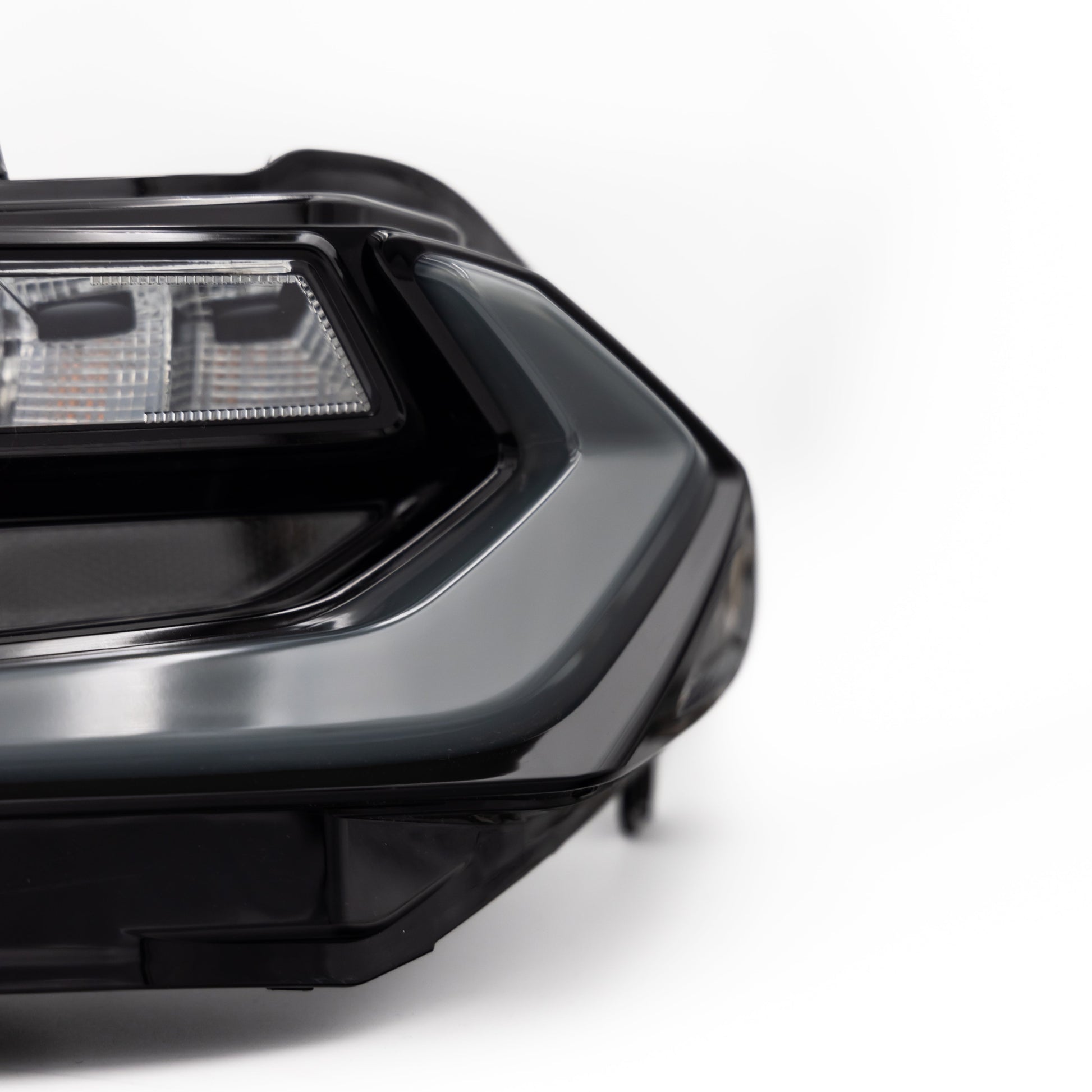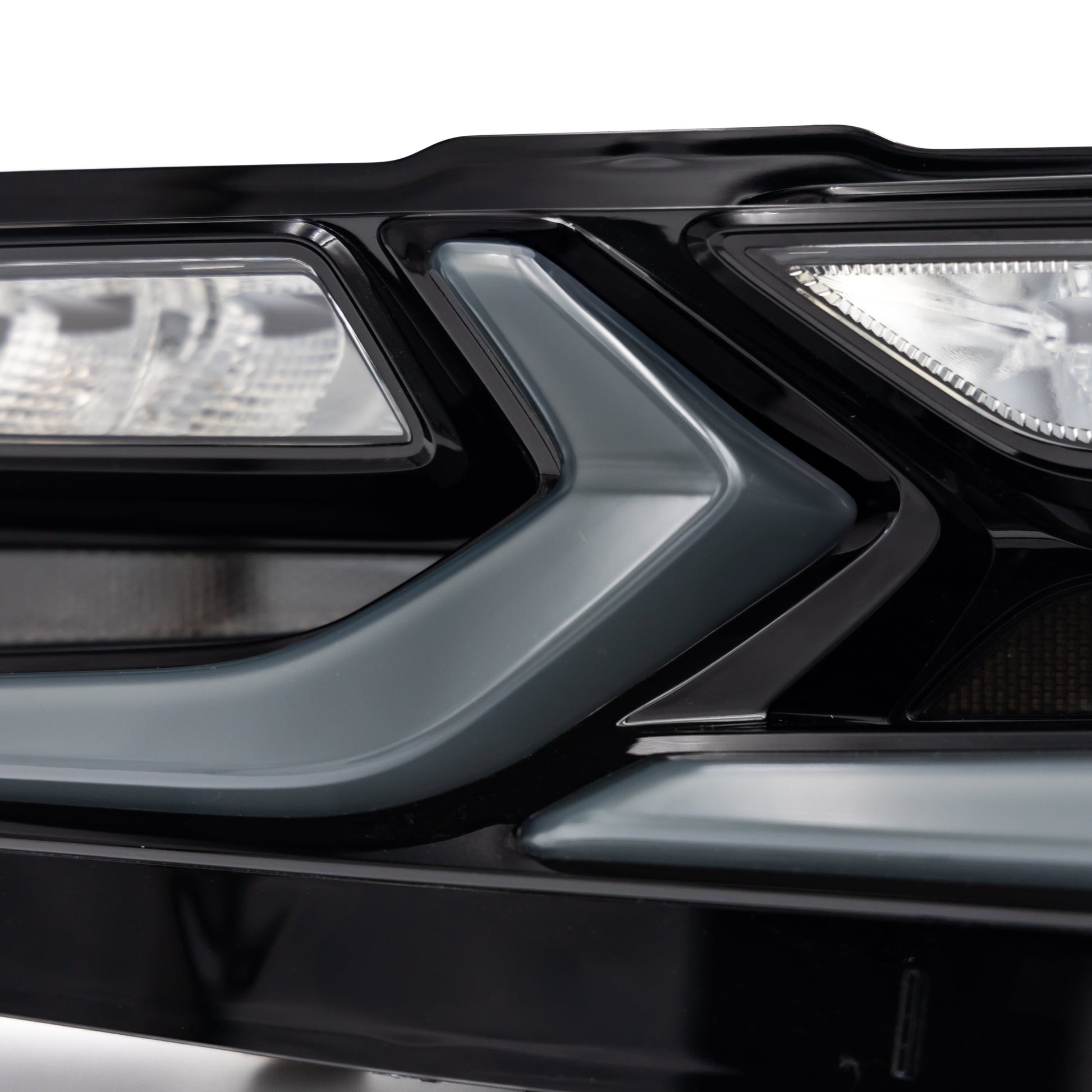 Draw the eye with ultra-bright LED taillights that celebrate speed. This plug-and-play kit is pre-assembled and easy to install in your 2020-2025 Chevrolet Corvette 1LT, 2LT, 3LT, Z06, or E-Rey. These daytime running lights sweep toward the outer edge of the glossy black housing with a modern sense of motion. Crisp white reverse lights and sequential Amber signals shine bright to turn heads.