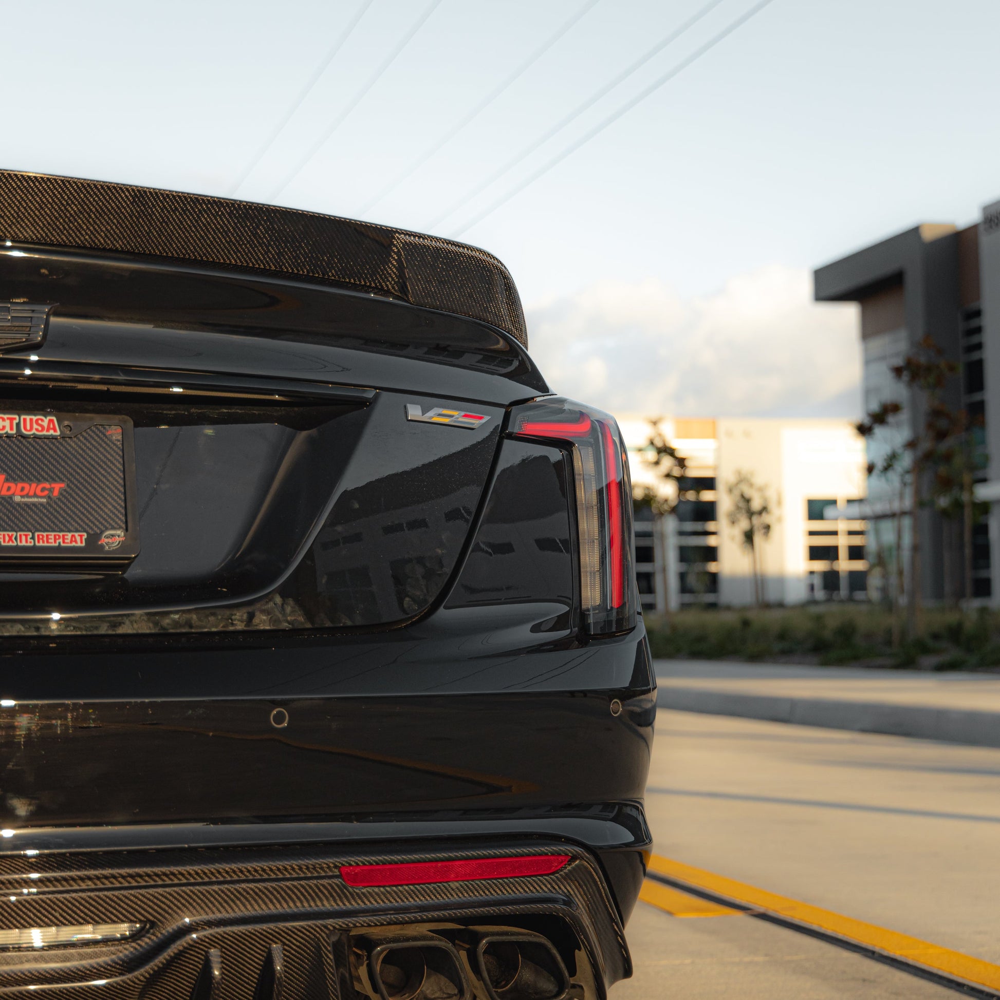 Elevate your 2022-2025 Cadillac CT5-V & Blackwing's appearance with our Type-ST Gloss Carbon Fiber Rear Spoiler. Designed to be taller and more aggressive than the optional OE Blackwing unit, this spoiler enhances both aesthetics and performance. Crafted using an autoclave process with pre-preg 3K, 2x2 twill carbon fiber cloth, it ensures superior durability and a sleek, high-luster finish. The automotive-grade clear coat with UV inhibitors protects the surface, maintaining its pristine appearance over time. Engineered for a seamless fit, it utilizes the OE Blackwing wing mounting hole pattern and mounts with OE-style studs. Professional installation is recommended to ensure optimal fitment and performance.