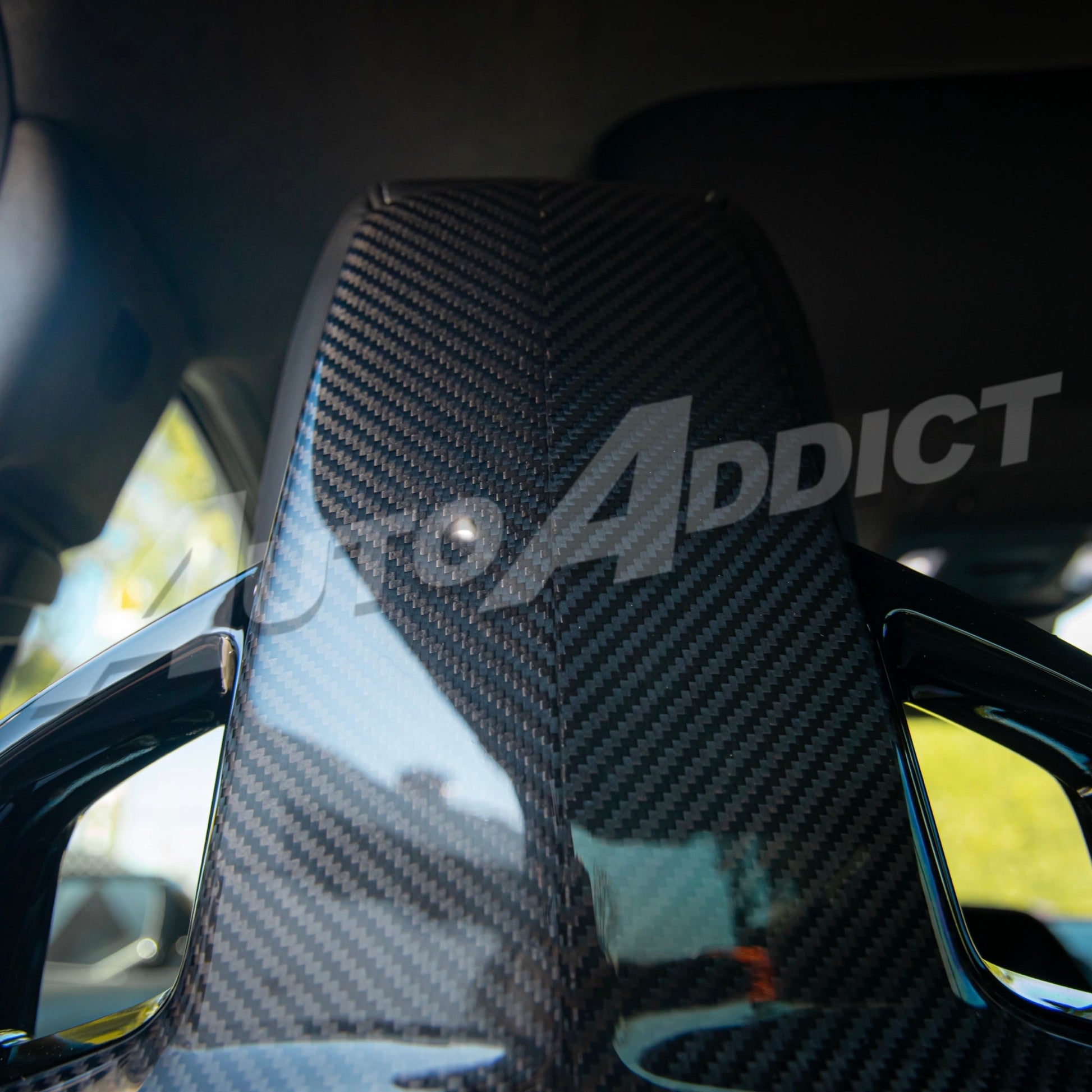 Elevate your CT5-V Blackwing interior to a new tier of craftsmanship and performance. These Auto Addict USA Pre-Preg Carbon Fiber V-Shaped Accented Front Seats bring an unmistakable blend of motorsport precision and Cadillac-level luxury. Designed to mirror the iconic V-Series identity, the carbon fiber accents are sculpted in a bold V-shape, creating a cohesive visual connection to the CT5-V Blackwing’s heritage.