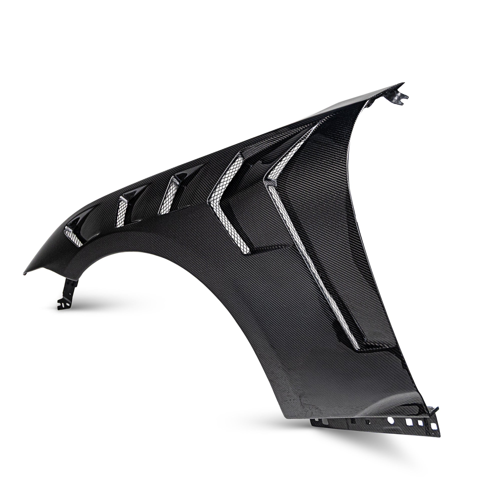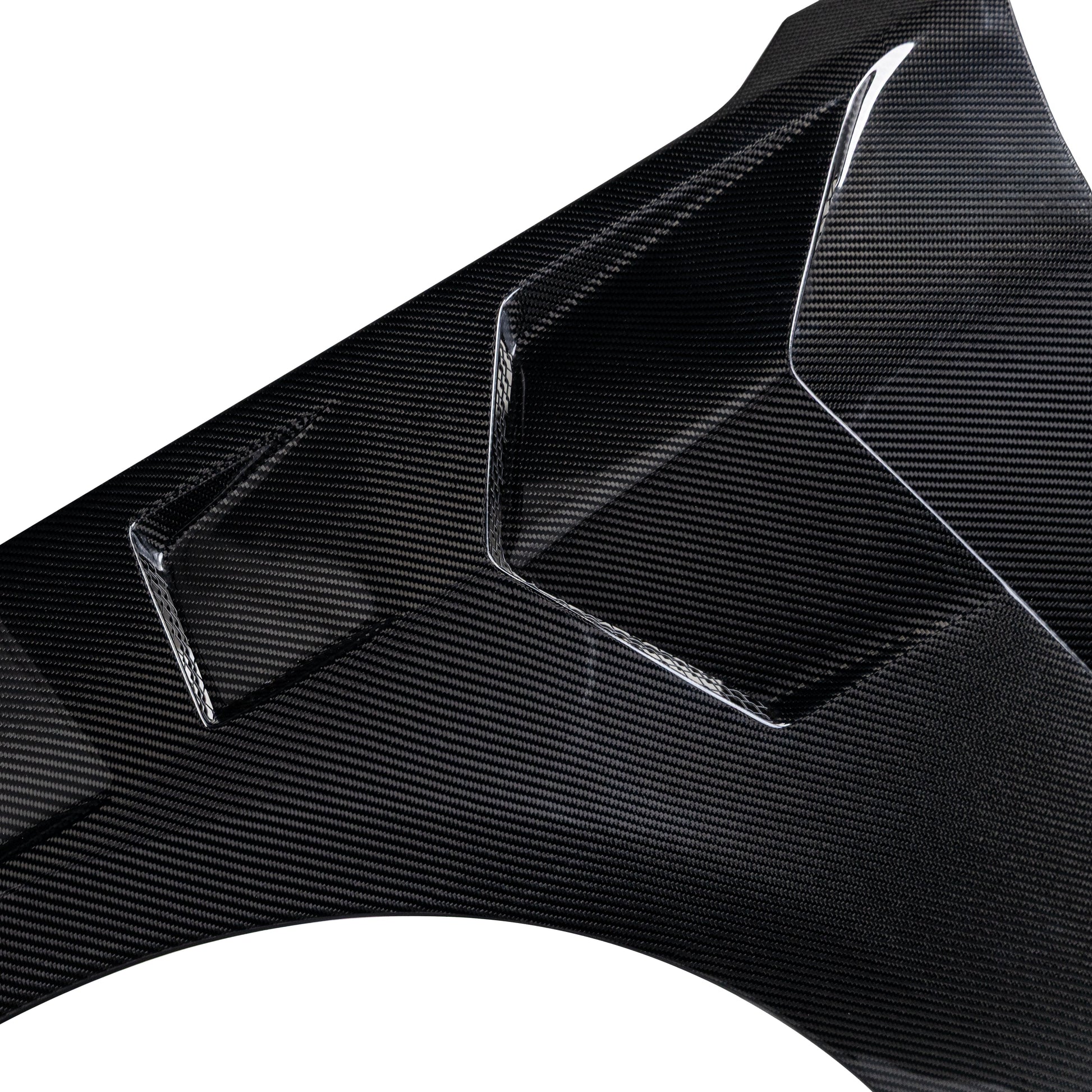Built for both track enthusiasts and street performance lovers, these carbon fiber fenders not only elevates your Mustang’s aggressive styling but also enhances its cooling efficiency and handling.