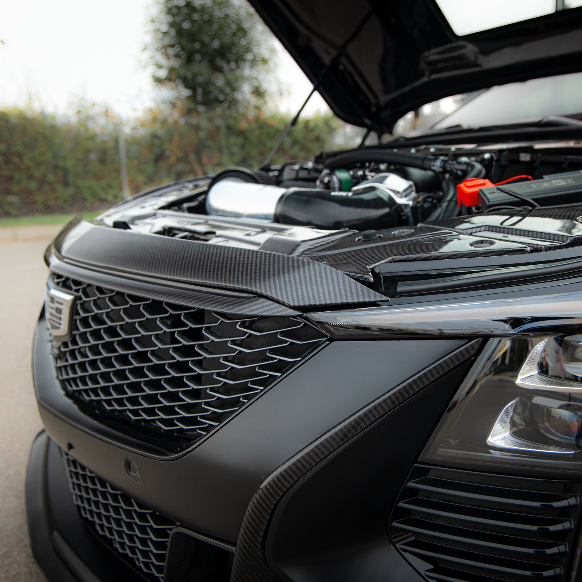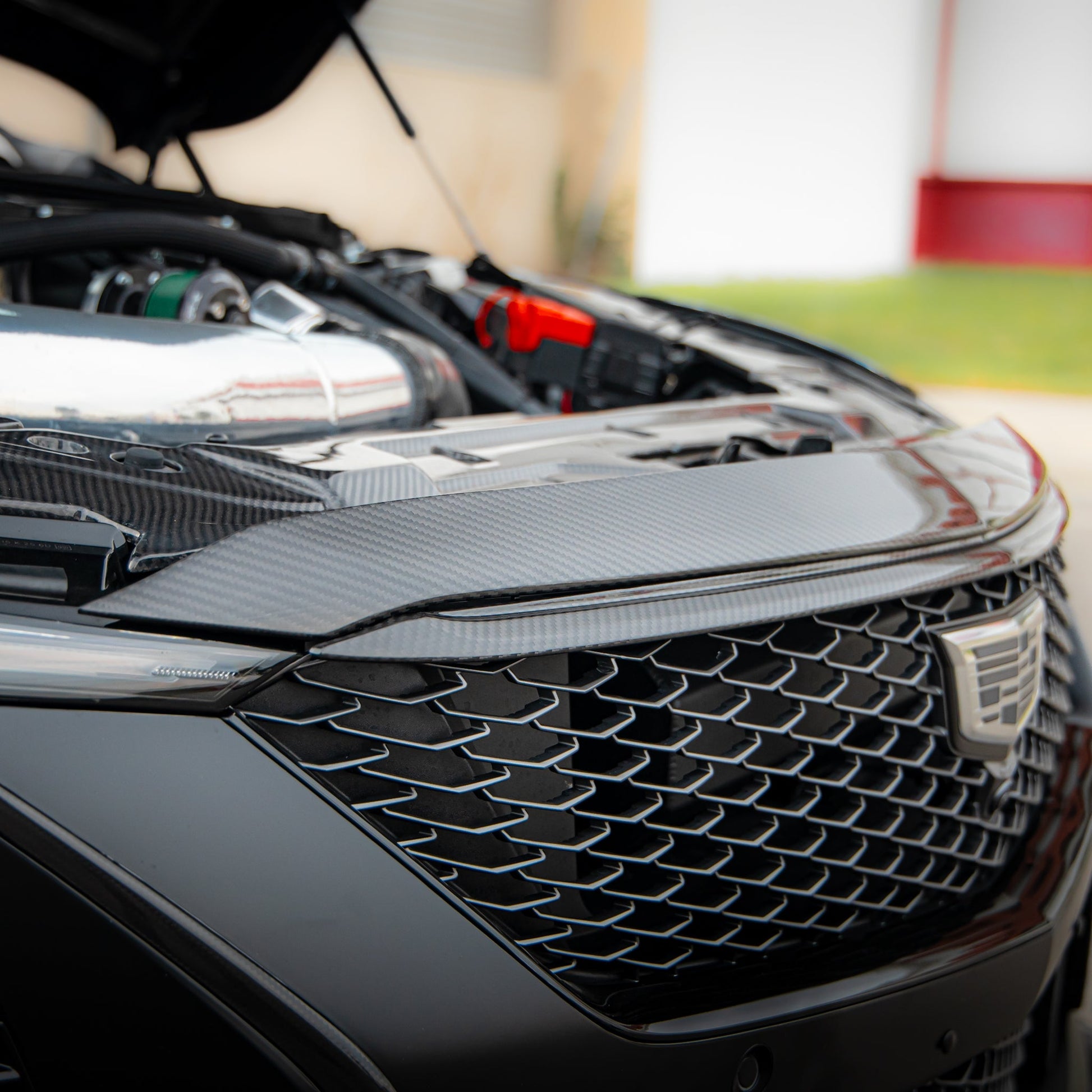 Transform the front end of your CT5-V Blackwing with the same craftsmanship and technology used in motorsport-grade aerodynamic components. These upper bumper shell pieces are precision-built from pre-preg (dry) carbon fiber, autoclave-cured for maximum strength and minimum weight. Each section is CAD-scanned from OEM geometry to ensure factory-level alignment and gap consistency with the stock front bumper assembly.