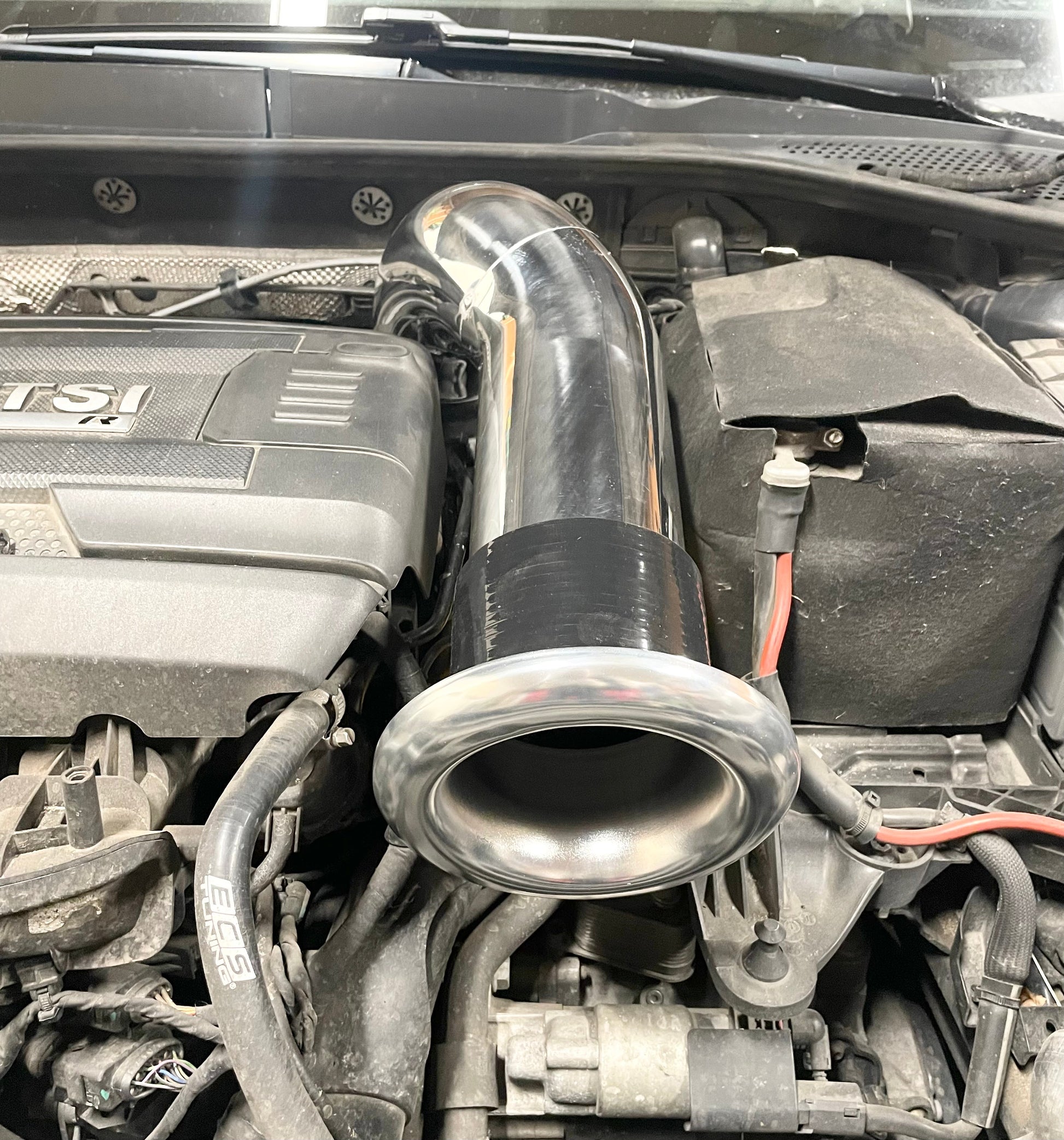 This is a 4" air intake tube for those with hybrid or big turbos on their MQB 2.0T.