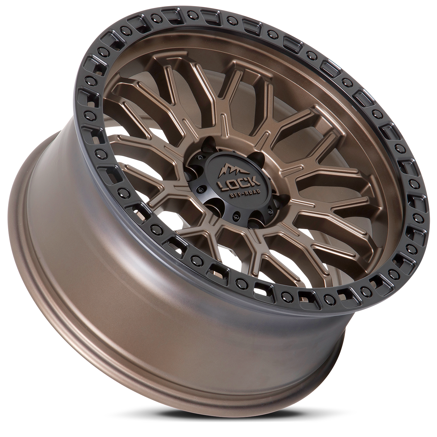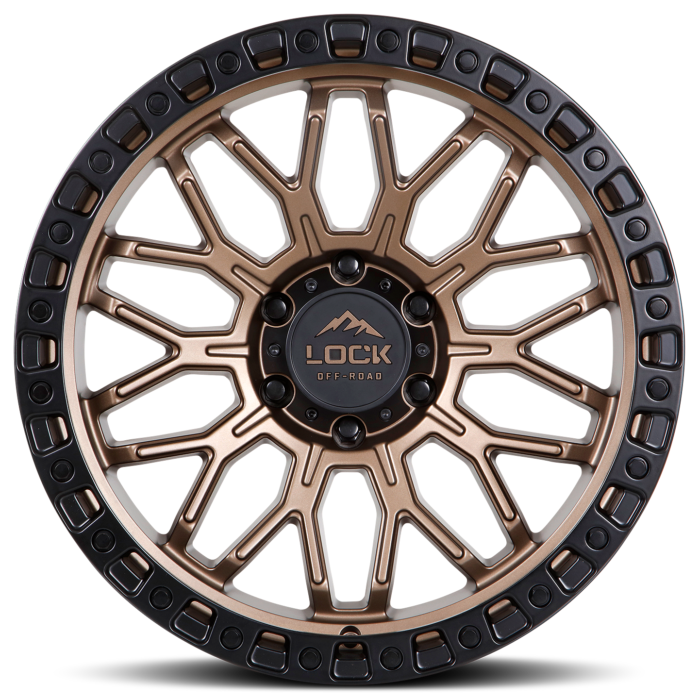 The Lock Off-Road Wheels Combat model incorporates a bold mesh-block pattern, utilizing intricate channeling for striking spoke details and reinforced structure. Drawing inspiration from modern military design, the Lock Combat seamlessly integrates with a timeless outer lip featuring vented chambering technology while enduring off-road specific design elements. Offered in Matte Black, Matte Gunmetal, and Matte Bronze, the TACT-coated finishes ensure a blend of visual appeal and durability, capable of withstanding extreme elements.