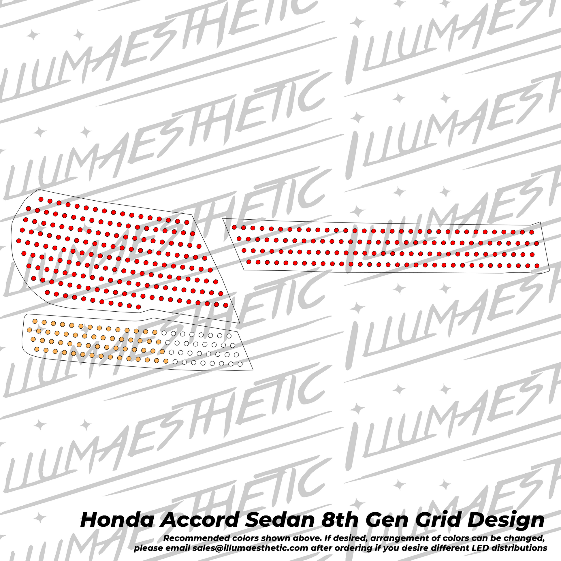 This DIY kit is designed for the (2008 - 2013) Honda Accord Sedan using OEM tail lights as cores. All LED panels come in gloss black as standard. Please email us before ordering if you would like a custom color.