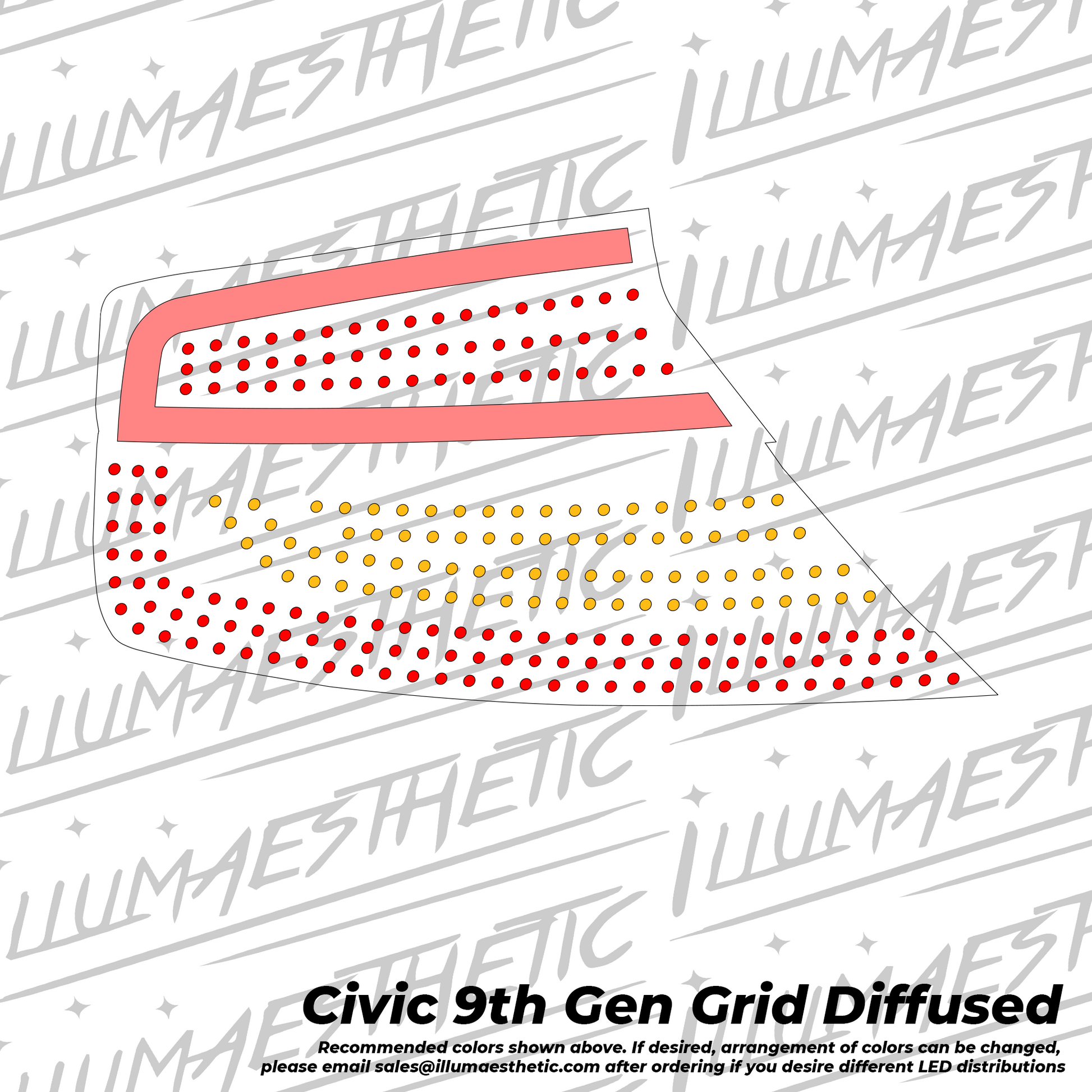 This DIY kit is designed for the (11-13) Honda Civic Coupe using OEM tail lights as cores. This kit is intended for 9th Gen. Honda Civic Coupe pre-facelift models only. All LED panels come in gloss black as standard. Please email us before ordering if you would like a custom color.
